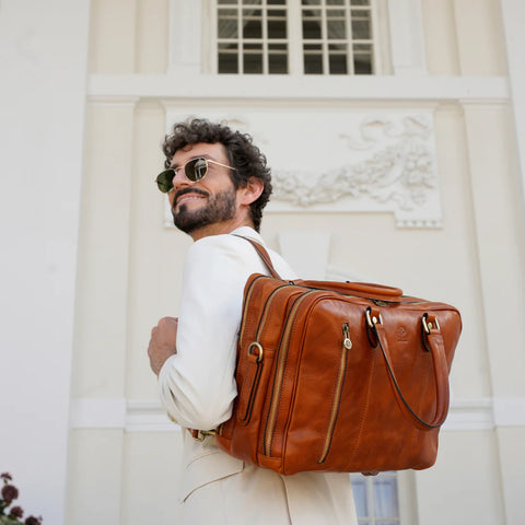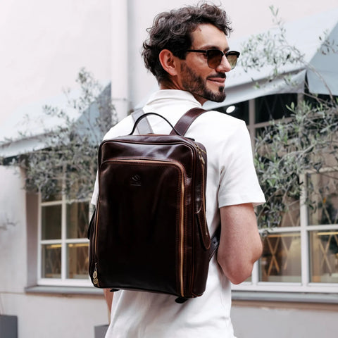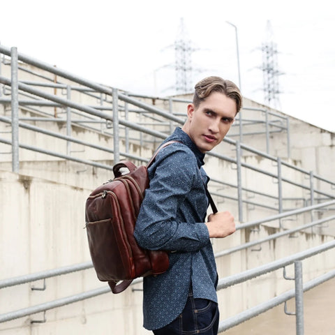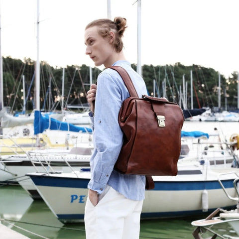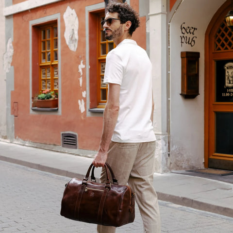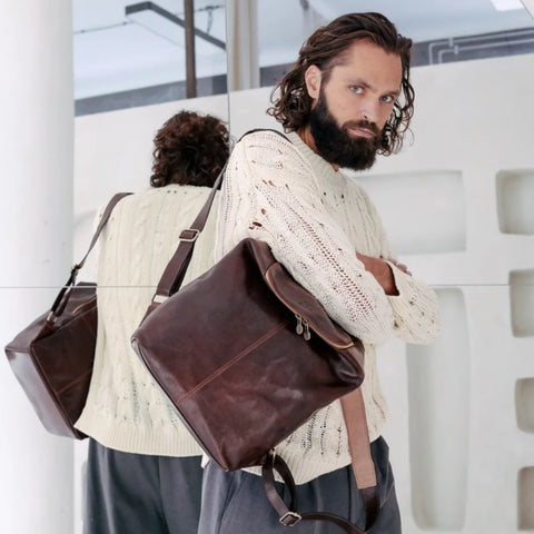 Dovolená v evropském městě plném historie a života s elegantním a mladistvým gentlemanem. Staré město nabízí nespočet krásných zákoutí. S nadšením představujeme nové kožené batohy, messenger tašky, aktovky i duffel bagy.