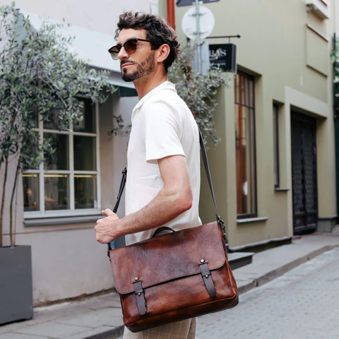 Elegantní kožené tašky nejsou určeny jen pro podnikatele. Přenesme se zpět v čase - naše tašky se přizpůsobí každému prostředí a promění muže v moderního mileniála.