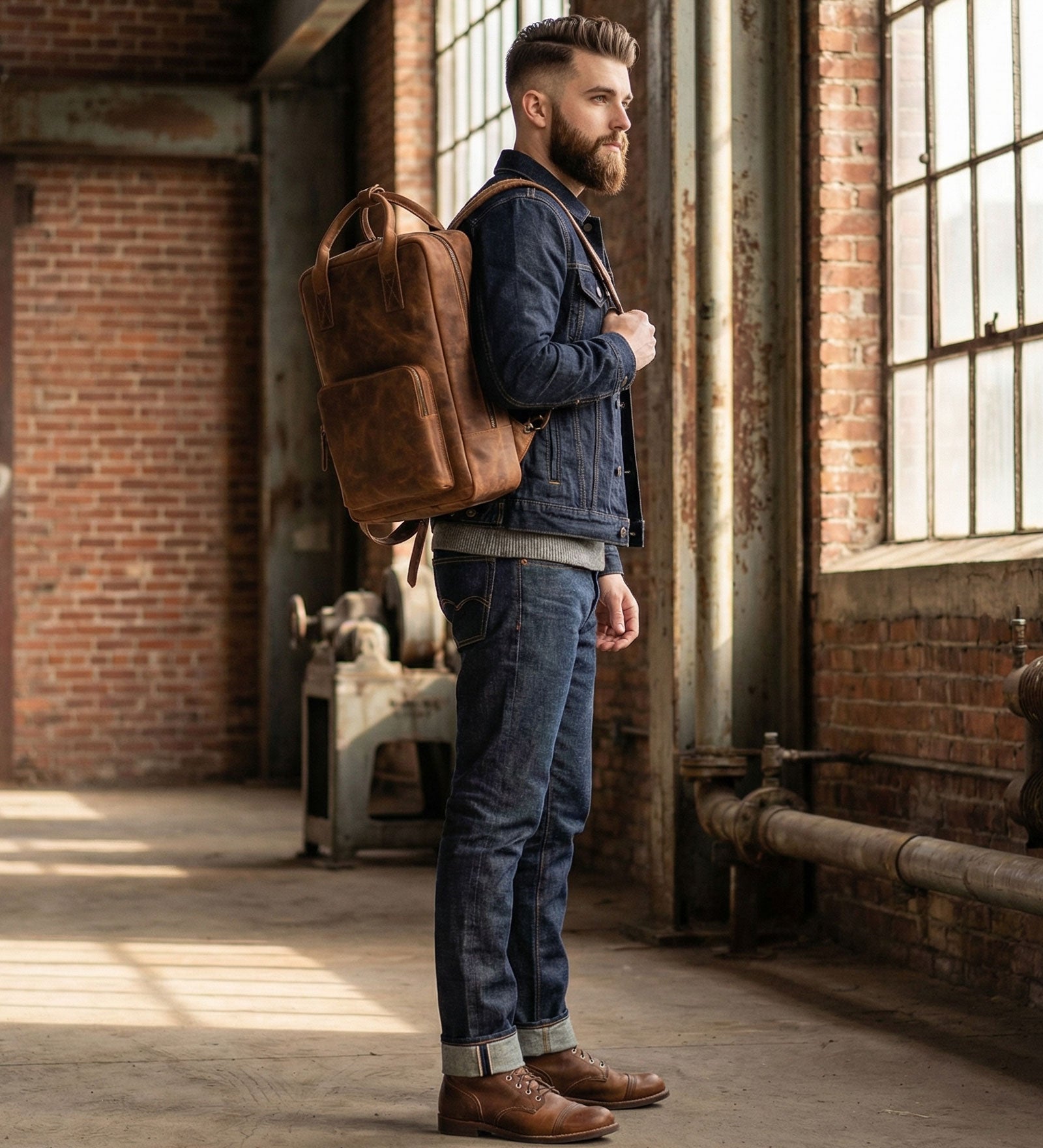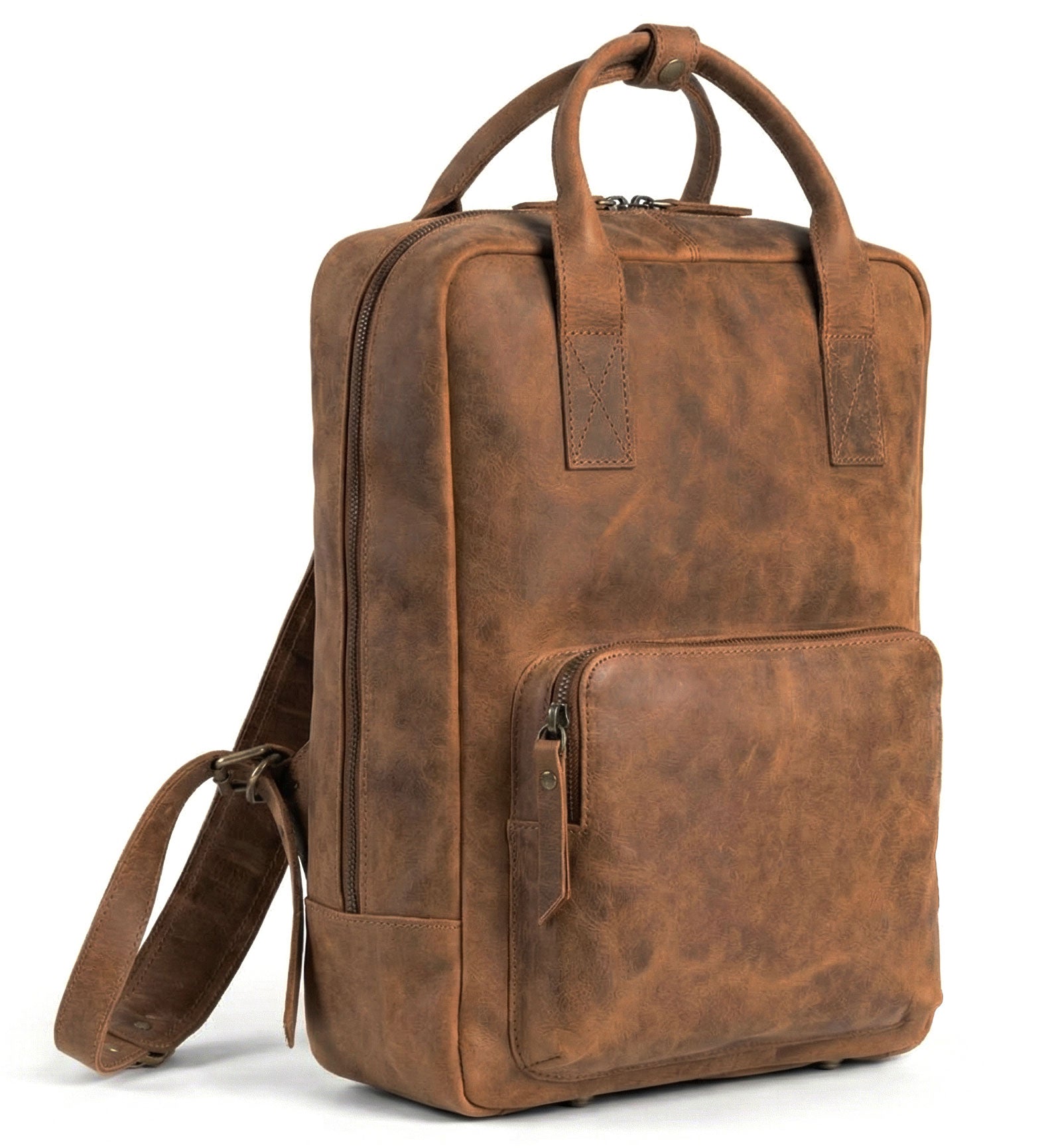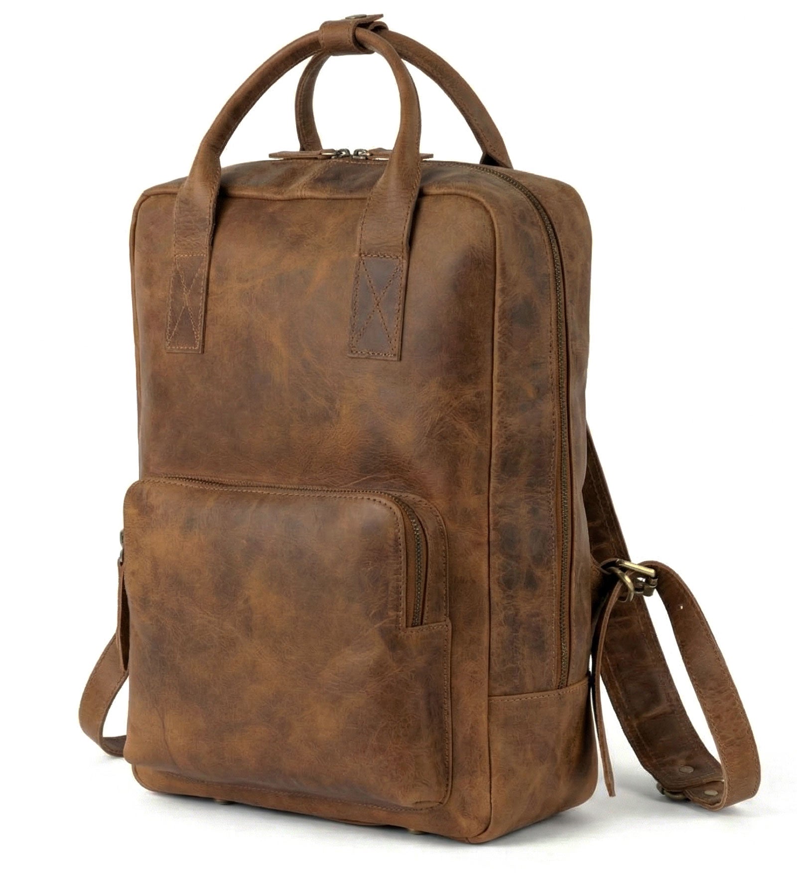 Chlouba naší kolekce kožených batohů. Tento cestovní batoh z pravé bůvolí kůže vznikl jako poctivý pracant pro každodenní nošení i delší cesty. Vzali jsme oblíbený design batohu Road Memories a posunuli ho o úroveň výš – použili jsme bytelnou kůži vodního bůvola, nejpevnější a nejodolnější přírodní kůži dostupnou na trhu. Bůvolí kůže je známá svou výraznou strukturou, vysokou odolností a dlouhou životností. Každý batoh je originál – s jemnými barevnými přechody a přirozenou kresbou. Časem kůže získává charakteristickou patinu, takže batoh s vámi doslova zraje. Ten, který si pořídíte dnes, bude za rok ještě krásnější a osobitější.