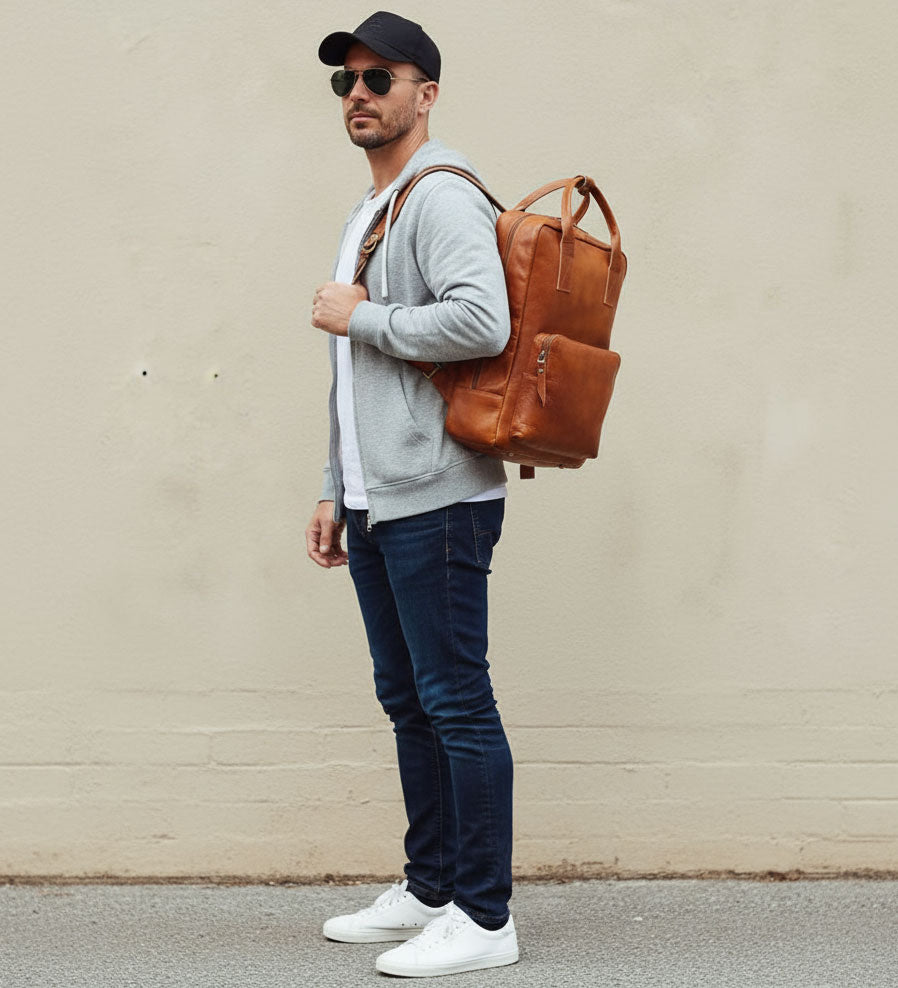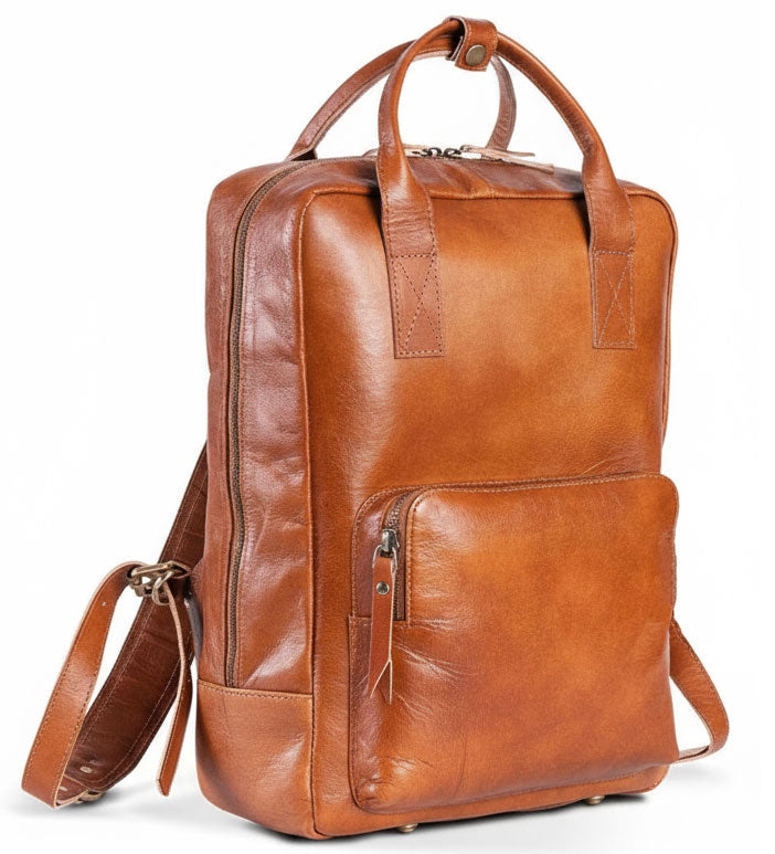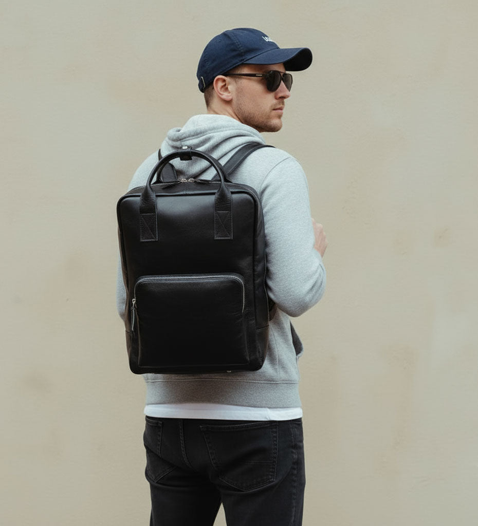 STOP - seznamte se - vyladěný batoh z pravé kůže od české značky GLARA. Dokonalý společník na cesty i do školy. Batoh je vyroben z jemné a lehké kozí kůže a váží pouhých 1,1 kg, takže ho na zádech téměř neucítíte. Batoh má kompaktní rozměry 28 × 40 × 12 cm, ale díky chytrému uspořádání je uvnitř dostatečně prostorný a praktický zároveň.