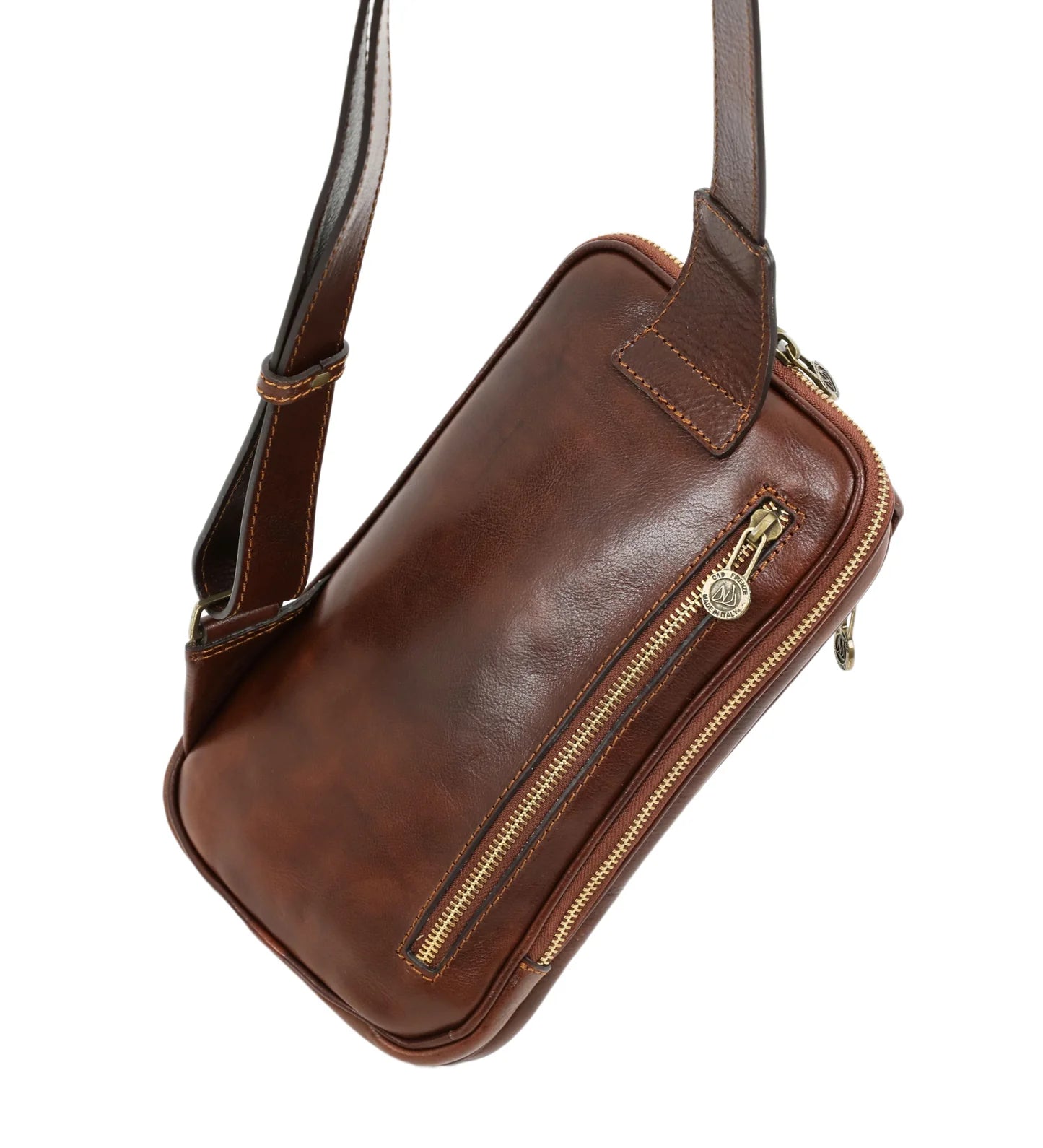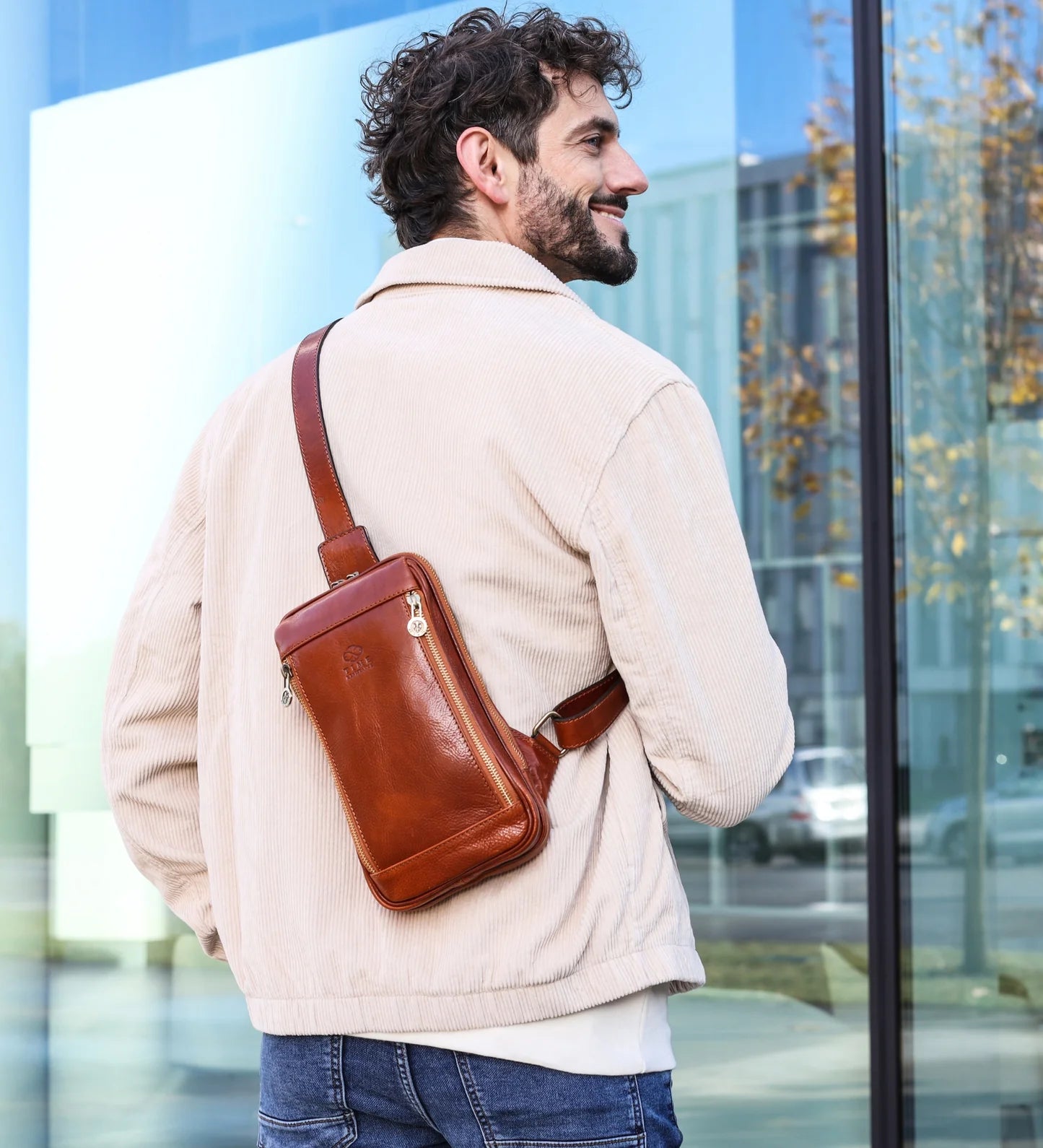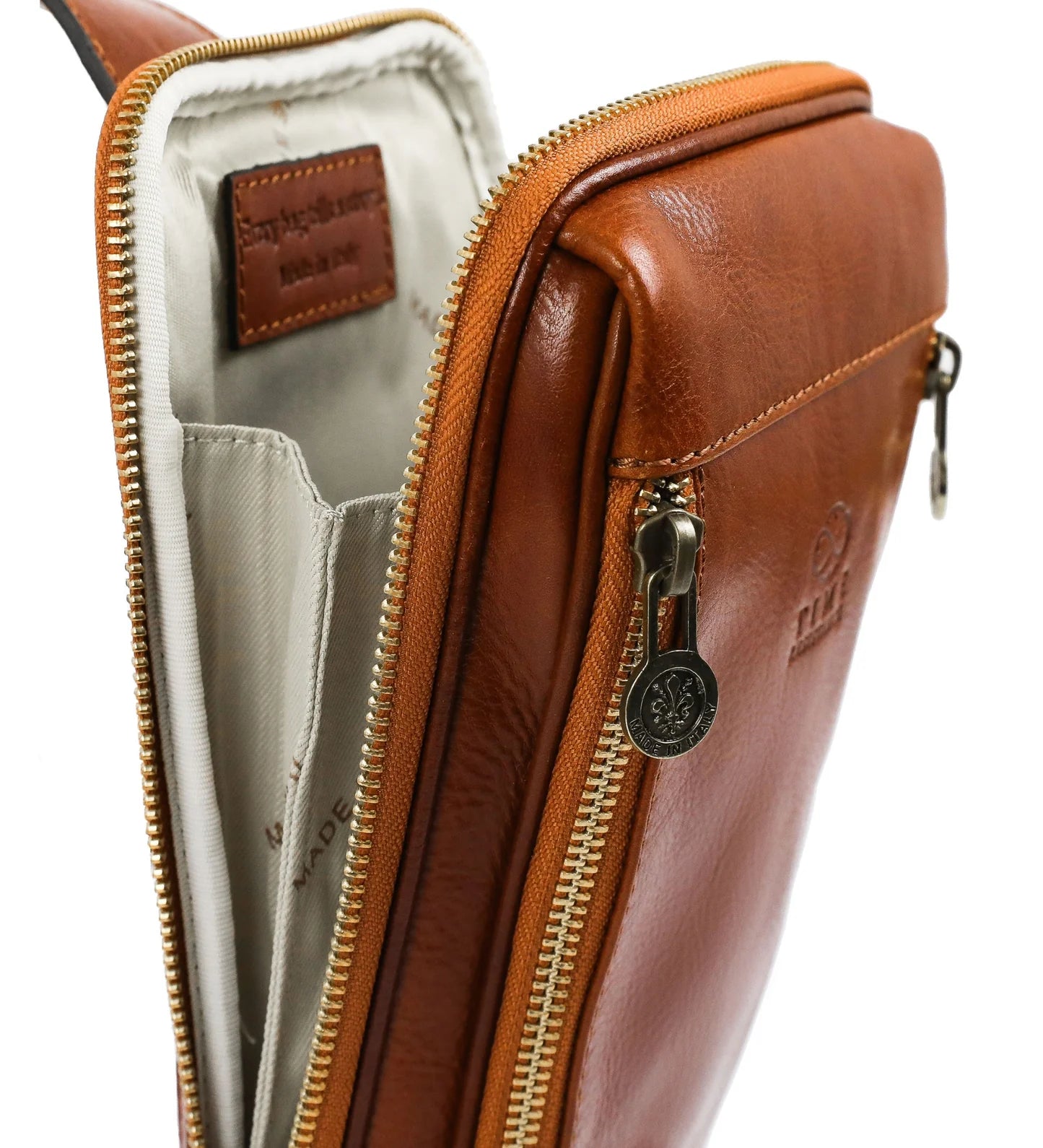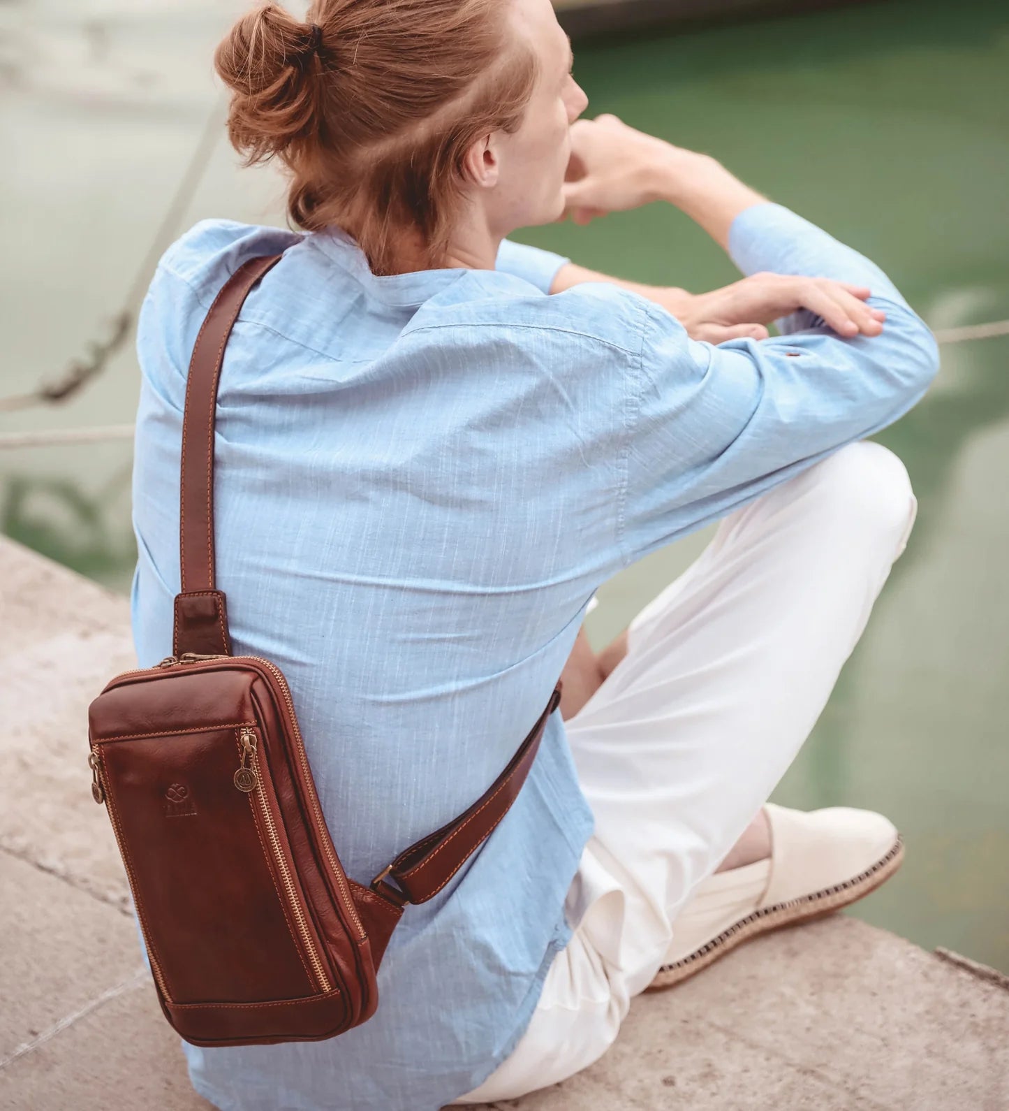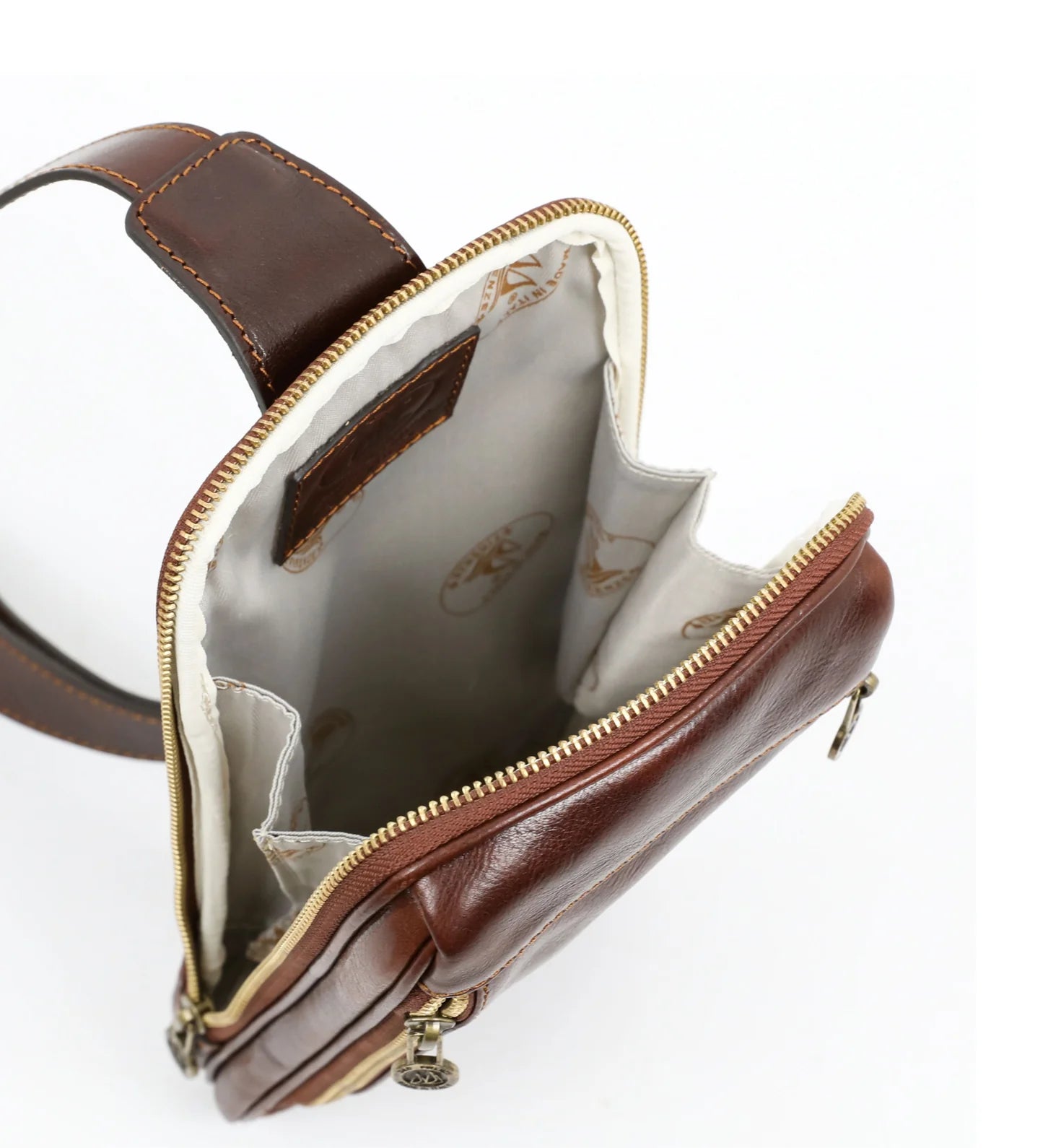 Tato italská kožená crossbody taška byla navržena pro maximální pohodlí při cestování. Vyrobena z prvotřídní italské kůže, tato elegantní taška na hrudník se přizpůsobí vašemu stylu a nabízí flexibilitu nošení – lze ji nosit na hrudi i na zádech, aniž by omezovala volnost pohybu či váš cestovatelský duch. Široký vstup do hlavní přihrádky zajišťuje snadný a rychlý přístup k vašim věcem.