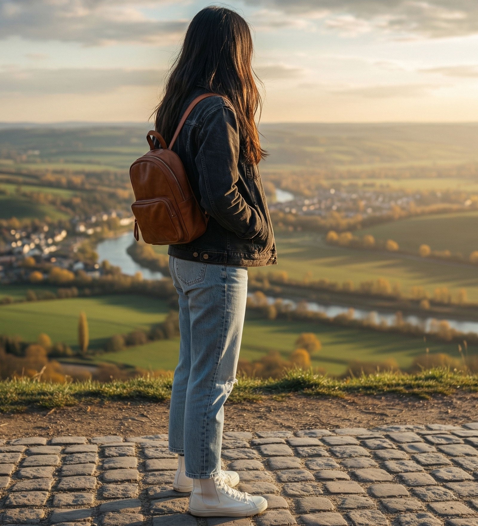 Batoh má praktické poutko pro nošení v ruce a nastavitelné zádové popruhy. Ty jsou pro maximální pohodlí podšity pevnou bavlněnou popruhovinou, díky které se batoh příjemně nosí i na holých ramenou. V horkých dnech je textil na rameni jednoduše příjemnější než kůže – a batoh si přitom zachovává svůj elegantní kožený vzhled.