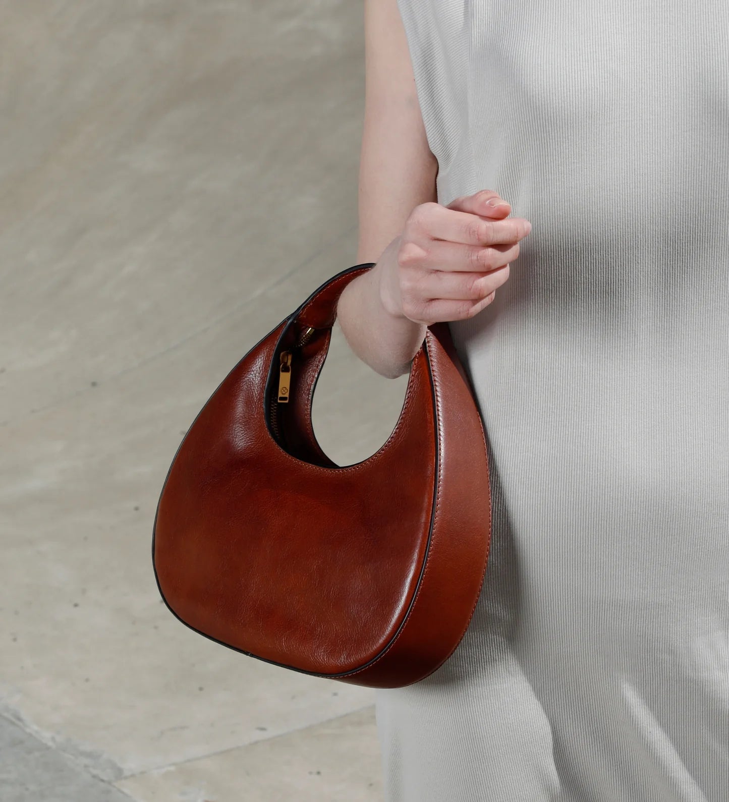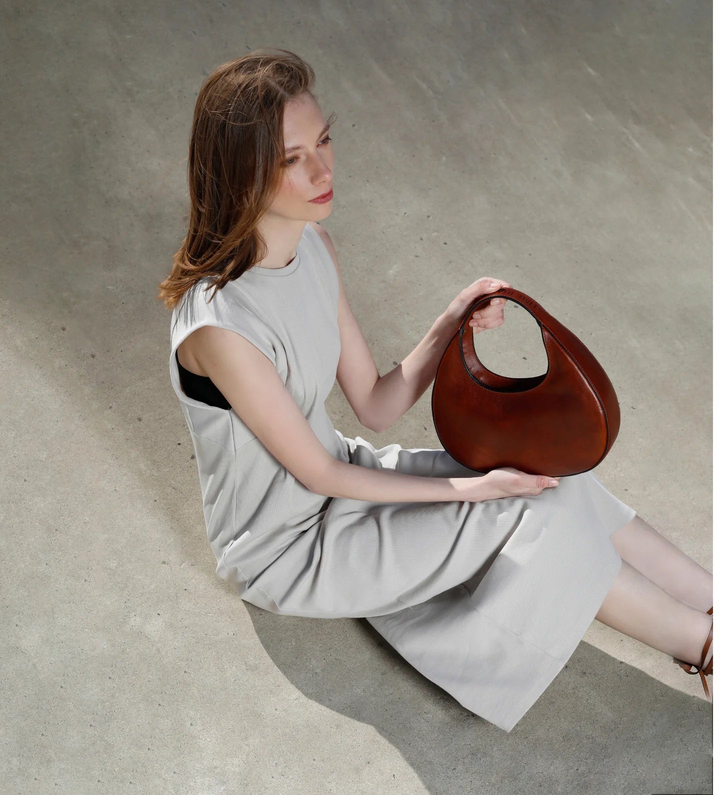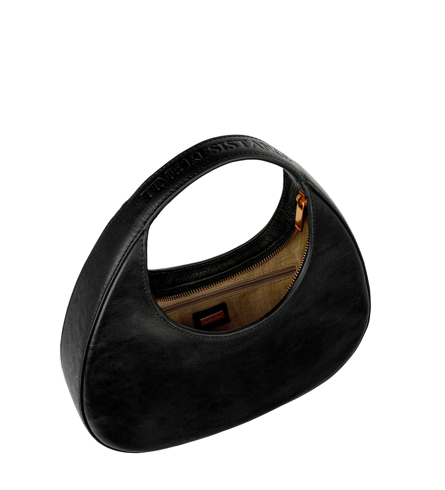 Představujeme italskou koženou kabelku "The Moonstone", nebesky inspirovaný doplněk, který zachycuje podstatu nadčasové elegance. Precizně zpracovaná s malým, zaobleným tvarem, který vyvolává dojem klidné krásy, zatímco kulaté ucho dodává kabelce půvabný dotek. Navržena tak, aby ji bylo možné pohodlně nosit na předloktí díky své kompaktní velikosti, vyzařuje auru nenucené sofistikovanosti. Zipový uzávěr zajistí, že vaše věci budou bezpečně uloženy, zatímco elegantní minimalistický design hovoří o vytříbeném vkusu. Kabelka je ozdobena logem Time Resistance na uchu, což je symbolem kvalitního řemeslného zpracování a trvalého stylu. Rozzářete svůj outfit s kabelkou "The Moonstone" – ztělesněním nebeského půvabu a nenápadné rafinovanosti.