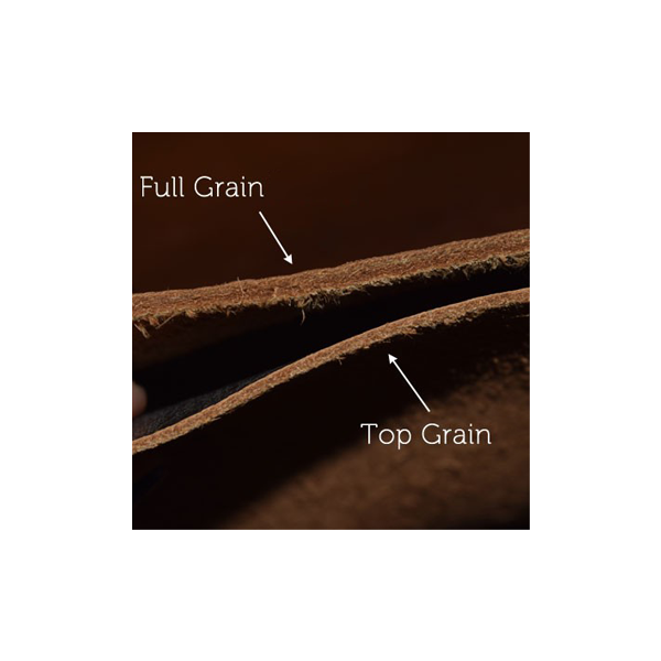 Produkt vyroben z celozrnné hovězí kůže (Full-grain leather). Jedná se o kůži, která při výrobě neprošla broušením, leštěním ani jiným procesem k odstranění kosmetických nedostatků. Celozrnná kůže je nejodolnější typ ze všech druhů kůží, neboť si uchovává vrstvu nacházející se těsně pod srstí, což jí dodává odolnost proti opotřebení. Díky nemožnosti odstranění povrchových vad (škrábance, jizvy,...) je možno ji získat pouze ze zvířat, se kterými bylo dobře zacházeno.