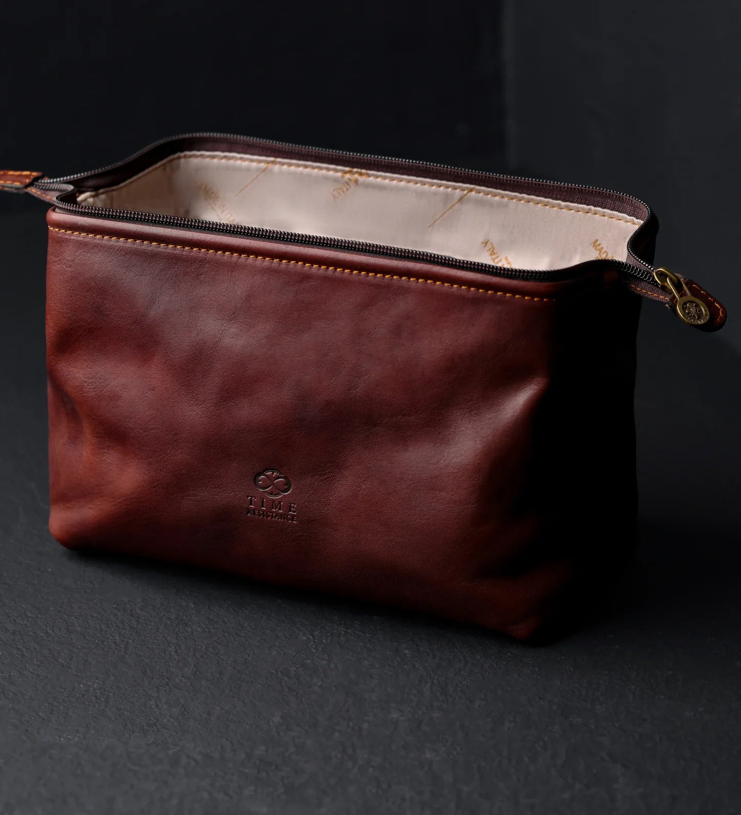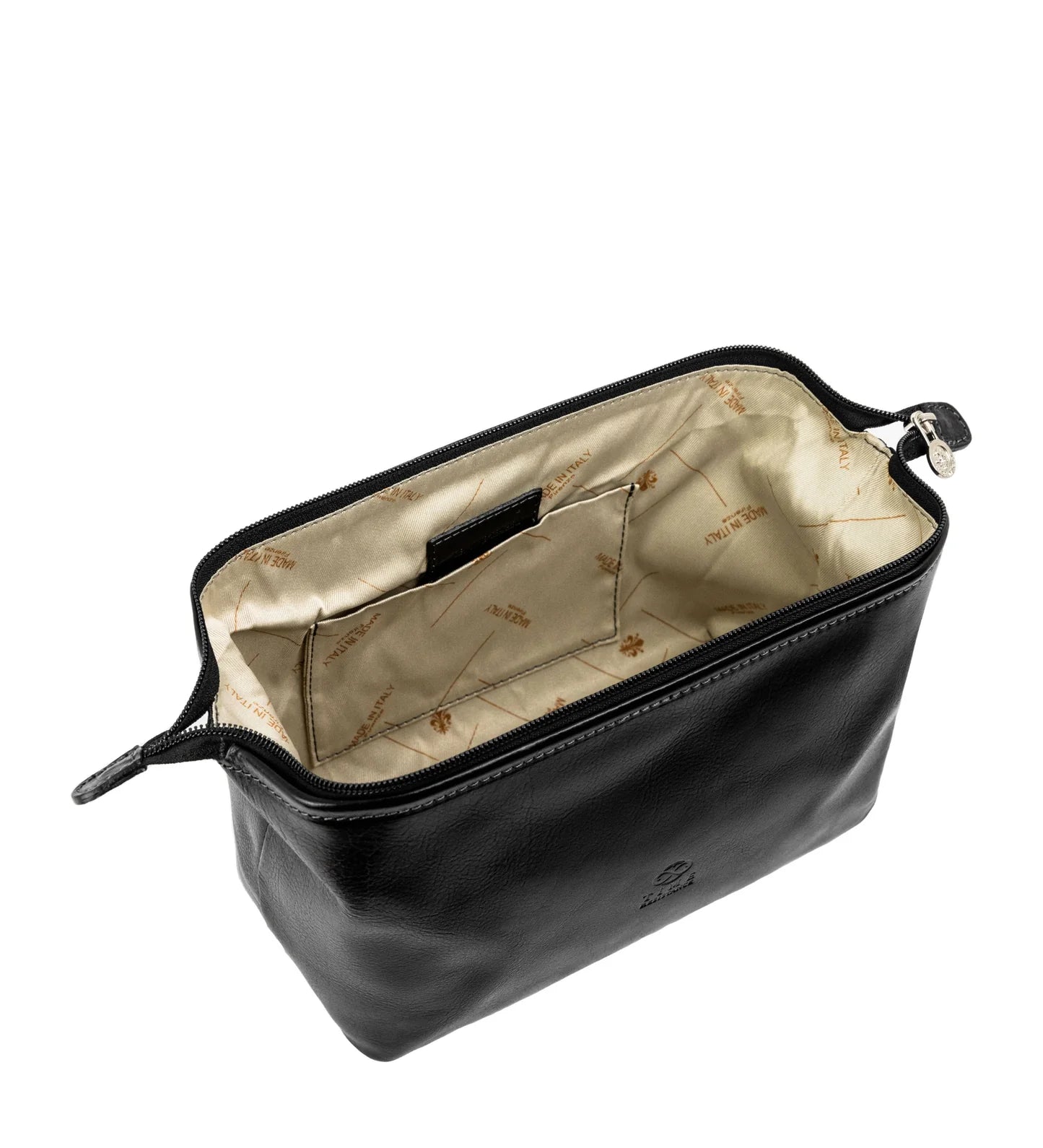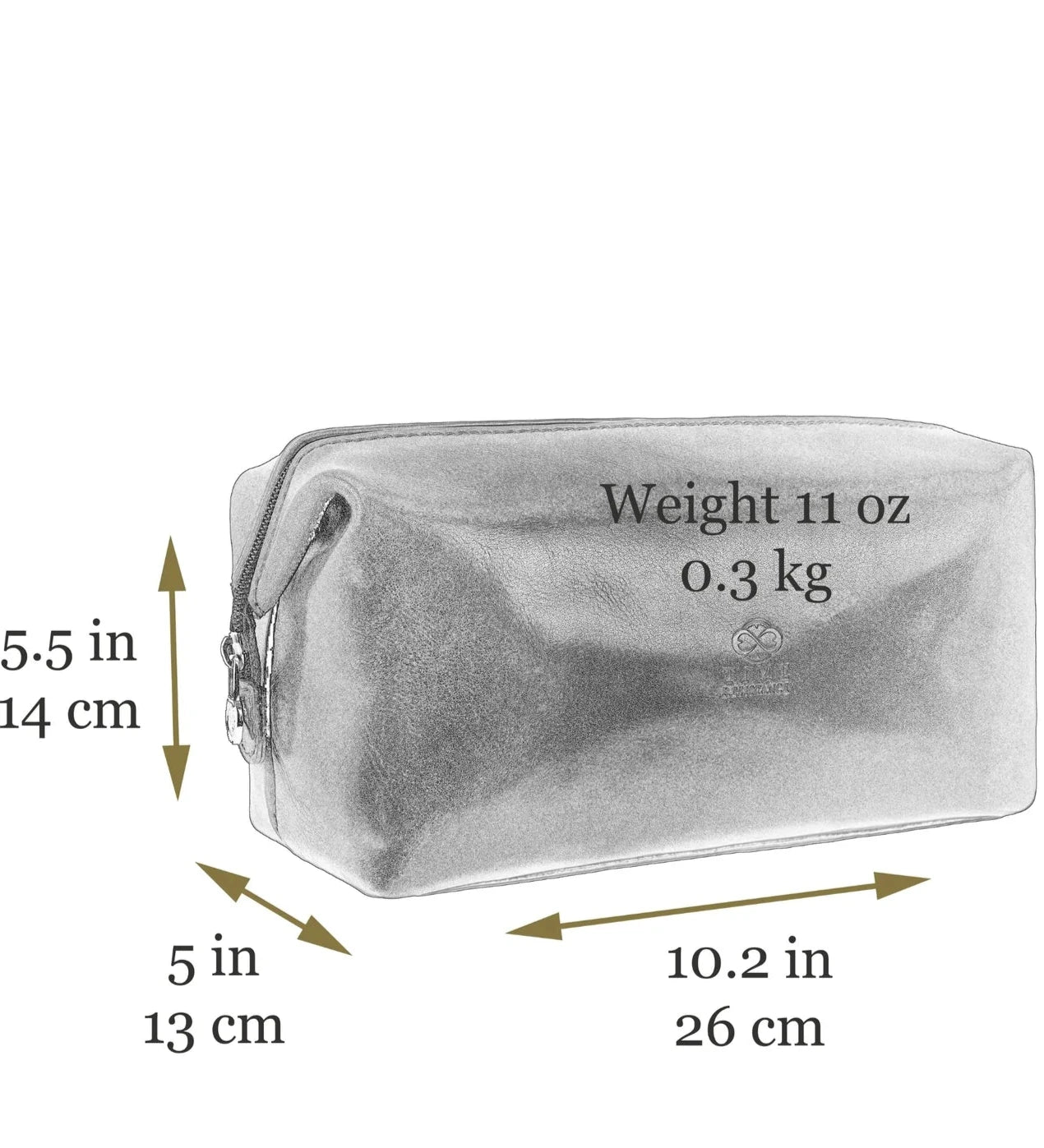 Tato toaletní taška z prvotřídní kůže nabízí dostatek prostoru pro všechny vaše každodenní nezbytnosti. Má prostornou hlavní přihrádku se zapínáním na zip a vnitřní kapsu, zatímco pevný rám umožňuje plné otevření pro snadný přístup ke všem věcem. S kapacitou 3,5 litru poskytuje dostatek místa a spolehlivé kovové prvky zaručují dlouhou životnost. Taška je ideální jako dárek.