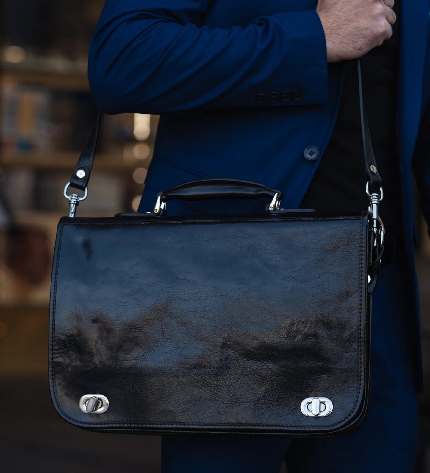 Elegantní a přesto s uměleckým nádechem, kožená aktovka pro muže, která spojuje dva světy – dokáže dodat formální eleganci k neformálnímu outfitu nebo umělecký dotek k obchodnímu stylu. Tato aktovka je ideálním doplňkem pro ty, kteří se pohybují mezi světem kreativity a korporátu. Je navržena pro ty, kdo se neustále proměňují a přetvářejí svůj styl, čímž se stává nenahraditelným společníkem v jejich každodenním životě.