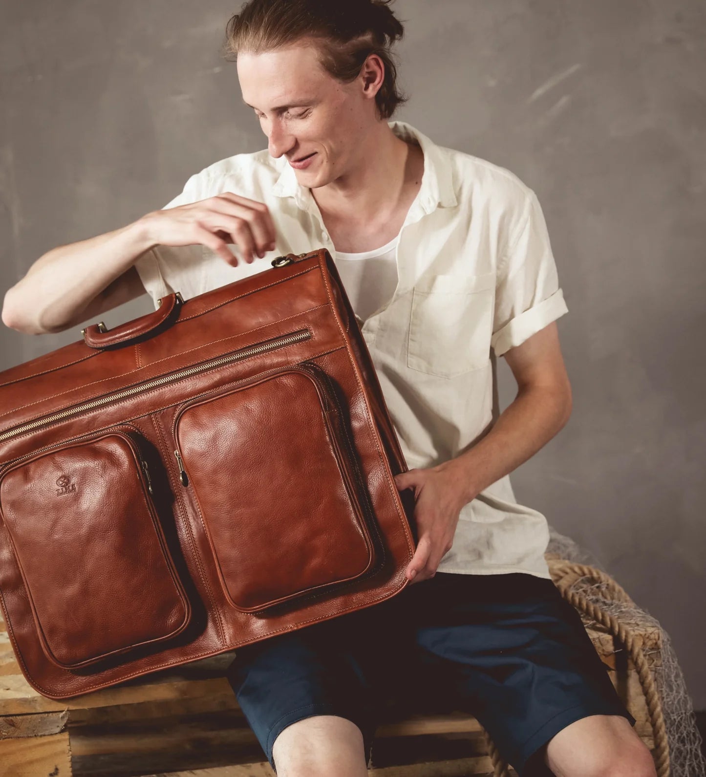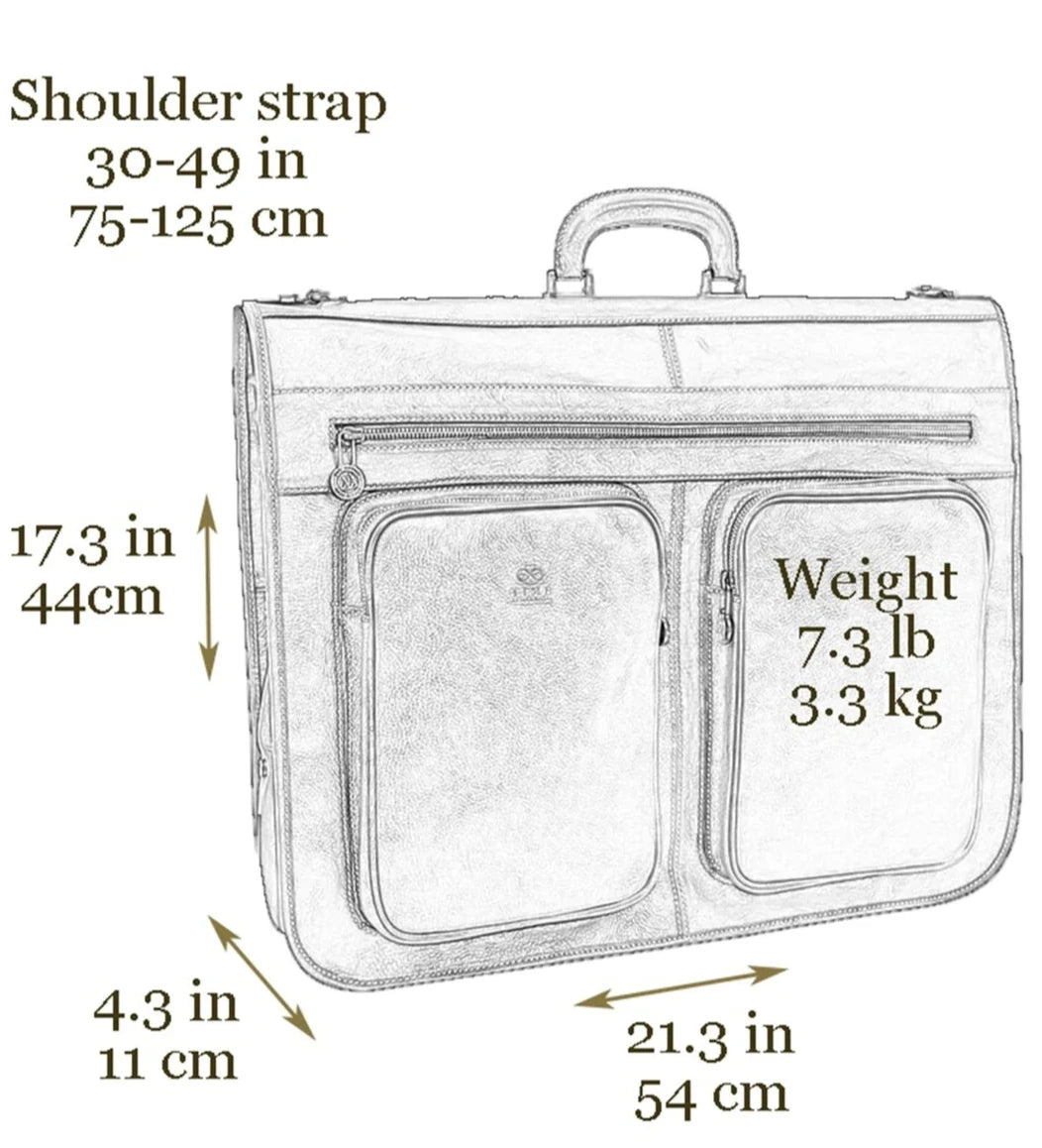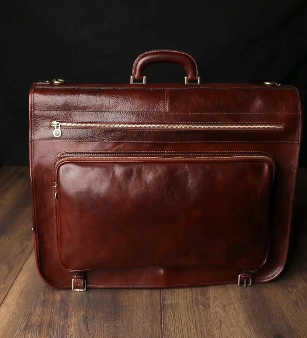 Představujeme stylového společníka pro moderního gentlemana – kožený garment bag, který je dostatečně prostorný na přepravu minimálně dvou obleků bez zmačkání. S touto elegantní taškou z plnozrnné italské kůže už nebudete muset nosit své obleky zvlášť. Od začátku až do konce vynikne na každé služební cestě.