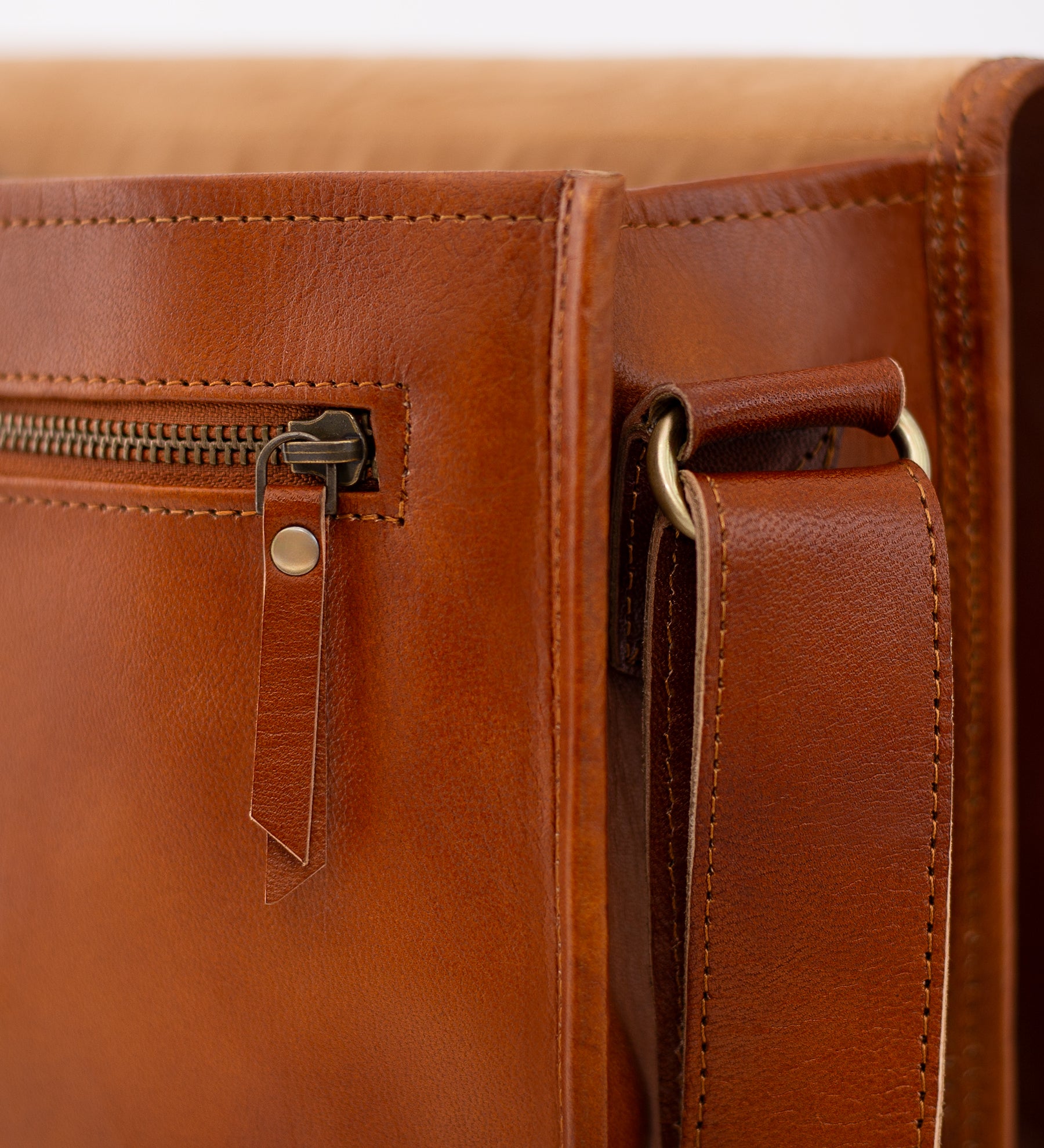 Kožená crossbody do kanceláře. Pracovní taška pro muže i ženy z jemné kozí kůže. Náš oblíbený minimalistický čistý design exteriéru. Nastavitelný popruh na pohodlné nošení jak přes rameno, tak přes tělo jako crossbody. Popruh tašky není odnímatelný.