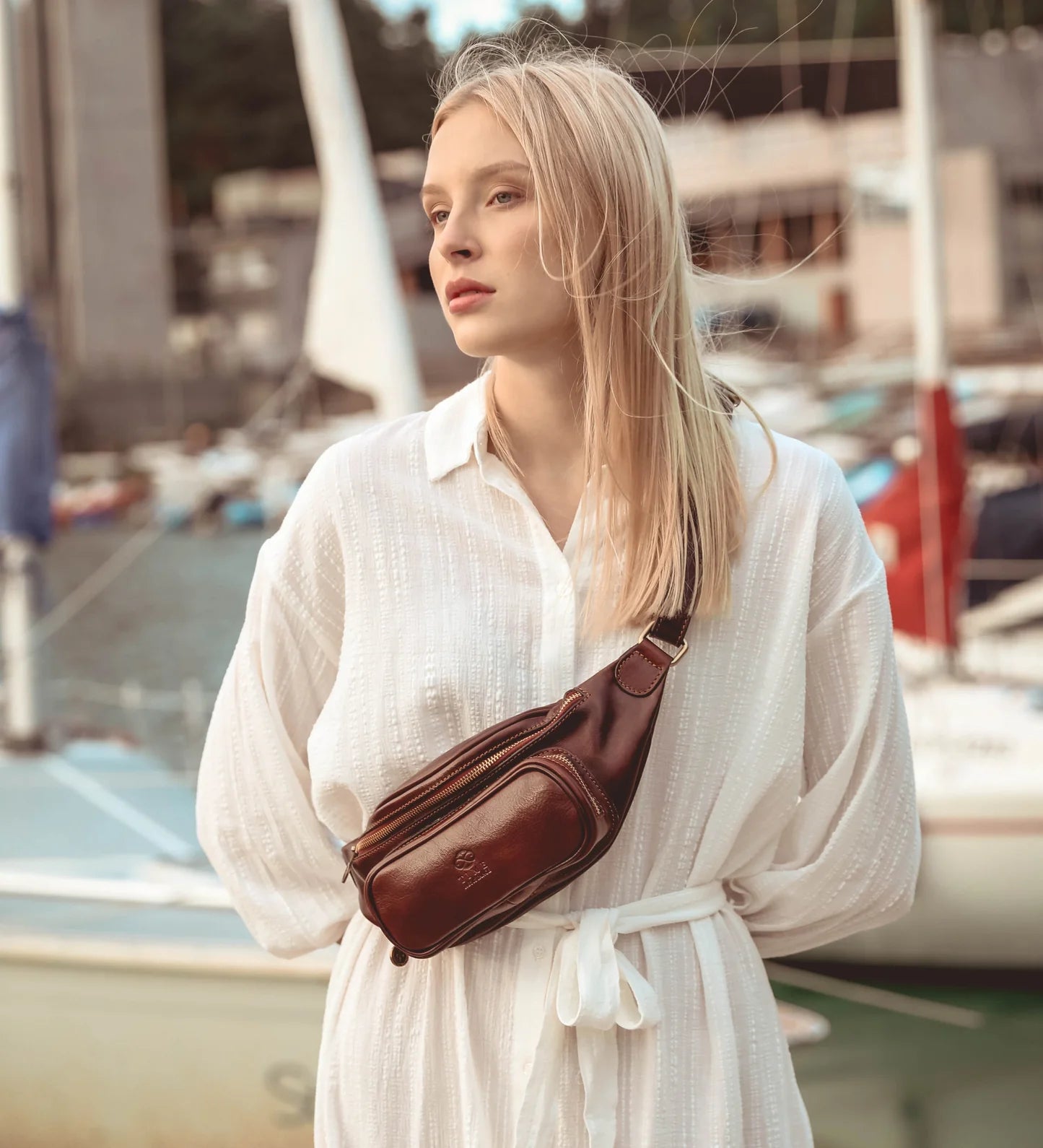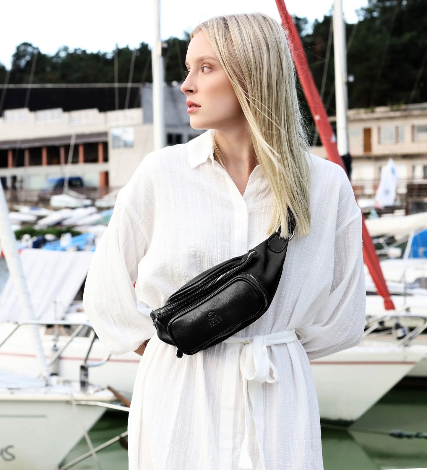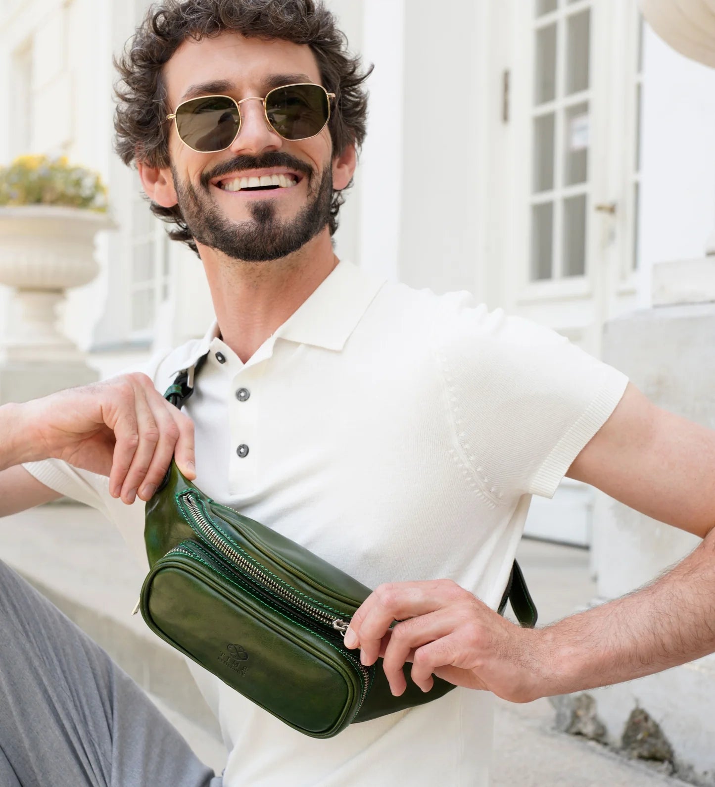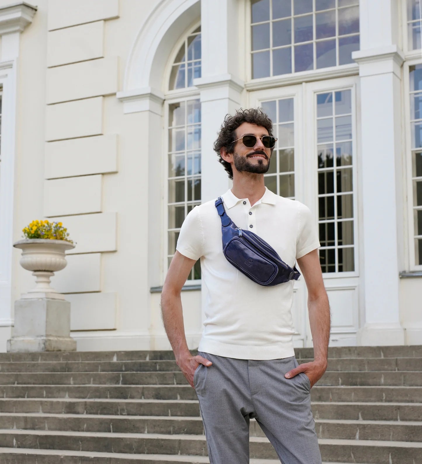 Luxusní kožená ledvinka, která dokonale kombinuje nenucenost s elegancí. Tato praktická taška z prémiové italské kůže je ideální volbou pro ty, kteří vyžadují jednoduchost a kvalitu. Minimalistický design pojme všechny nezbytnosti – má prostornou hlavní kapsu a dvě zipové kapsy pro karty, klíče nebo smartphone. Perfektní společník na cesty nebo při návštěvě farmářského trhu.