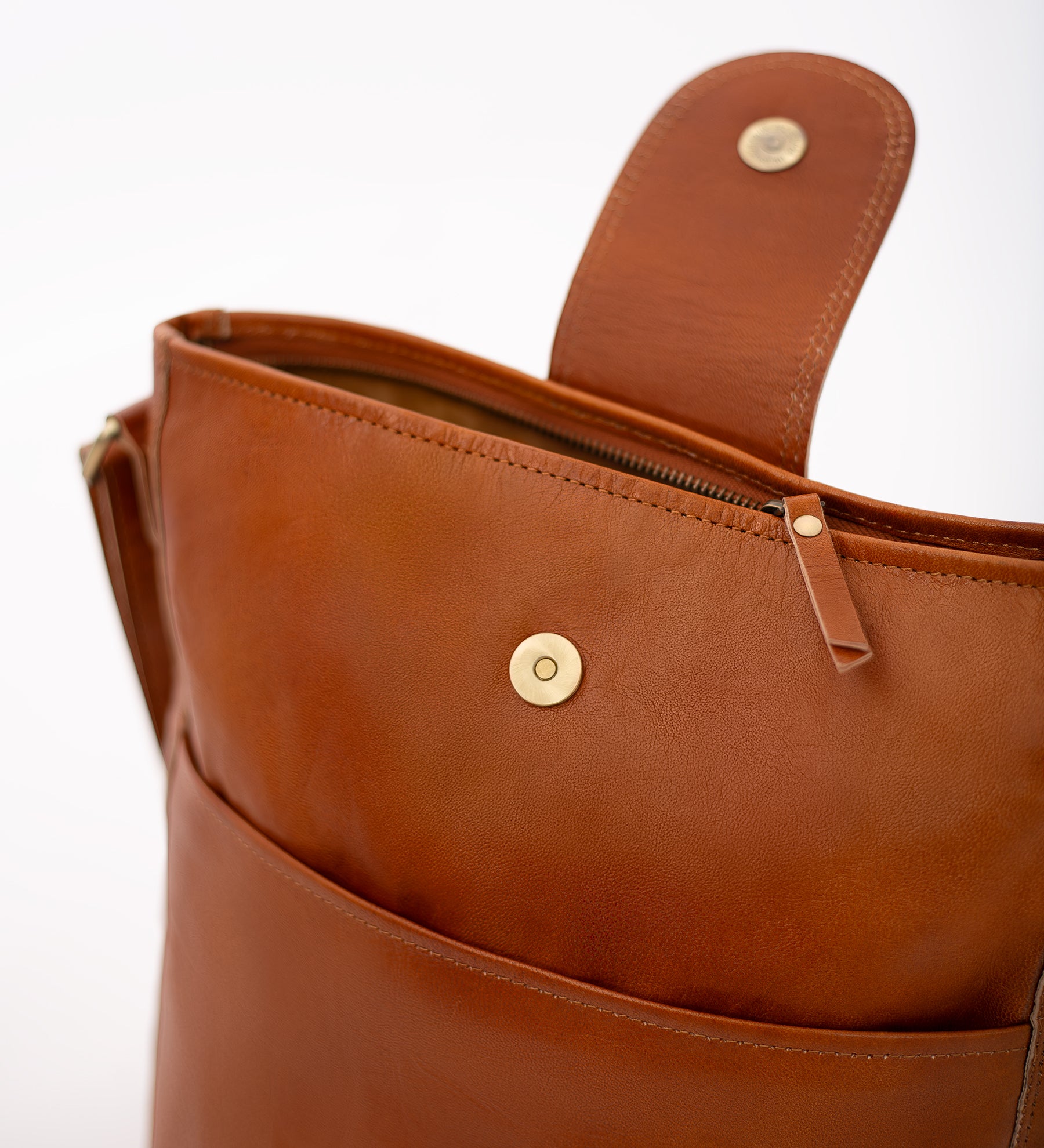 Potřebujete cestou z práce nakoupit? Díky rozměrům se kabelka promění v kompaktní shopperku. Bez problémů pojme i A4 dokumenty, skripta nebo lehký notebook do velikosti 14". Pokud ji naplníte až po okraj, lze ji i tak bezpečně zavřít díky kožené přezce s magnetickým zapínáním – i když zip zůstane otevřený.