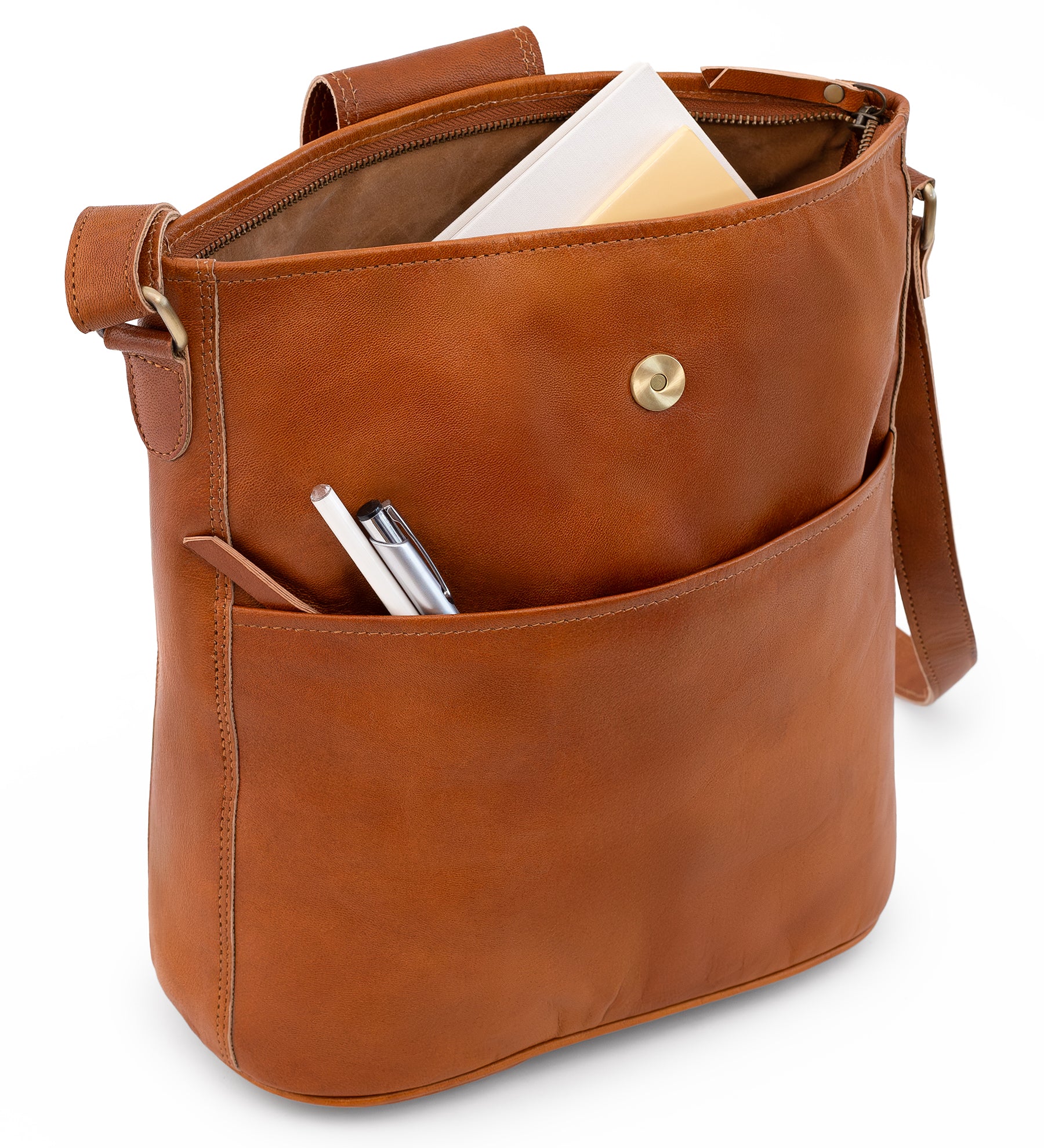 Tato kabelka z jemné kozí kůže kombinuje minimalistický design s promyšlenou funkčností – sladíte ji s džínami, sukní i sakem. Nízká hmotnost (pouhých 650 gramů) zajišťuje pohodlné nošení, a přesto nabízí dostatek prostoru na vše důležité – mobil, peněženku, klíče, diář, láhev s vodou i tablet.
