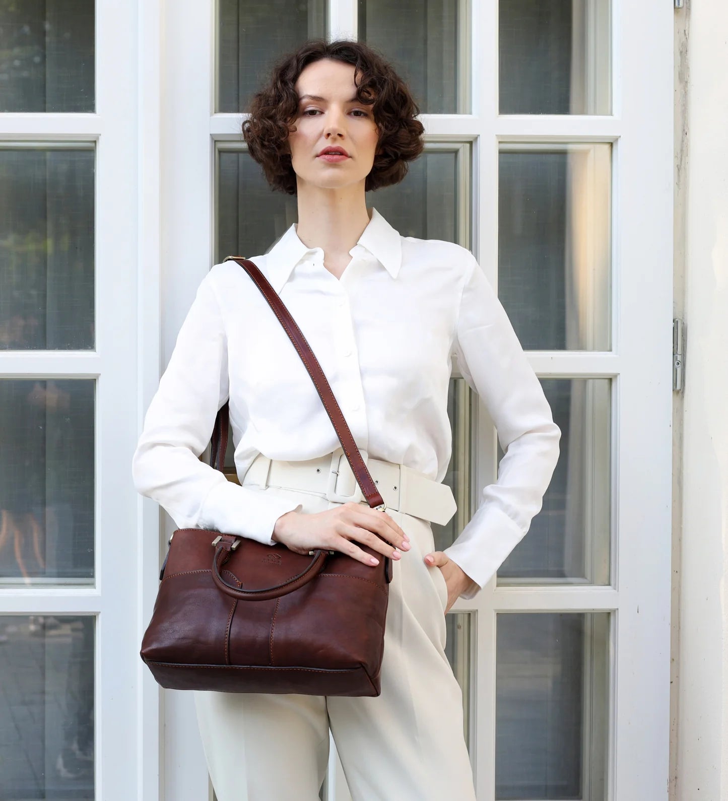 Italská kabelka Camilla je navržena s důrazem na strukturovaný tvar a představuje chytrou a všestrannou volbu pro každodenní nošení. Jednoduché linie této elegantní tašky přes rameno jsou zvýrazněny dvěma praktickými kapsami na přední straně. S dvěma uchy a odnímatelným nastavitelným ramenním popruhem nabízí variabilní možnosti nošení. Překvapivě prostorná, tato kabelka pojme všechny vaše každodenní nezbytnosti a ještě zbývá místo pro další důležité věci. Má dvě velké oddělené přihrádky, které jsou rozděleny prostornou kapsou na zip, a další kapsy pro snadnou organizaci vašich věcí. Objem 4,5 litru, odnímatelný a nastavitelný ramenní popruh, dvě kapsy na zip a dvě kapsy uvnitř, extra silné magnetické zapínání, bavlněná podšívka, spolehlivé kování.