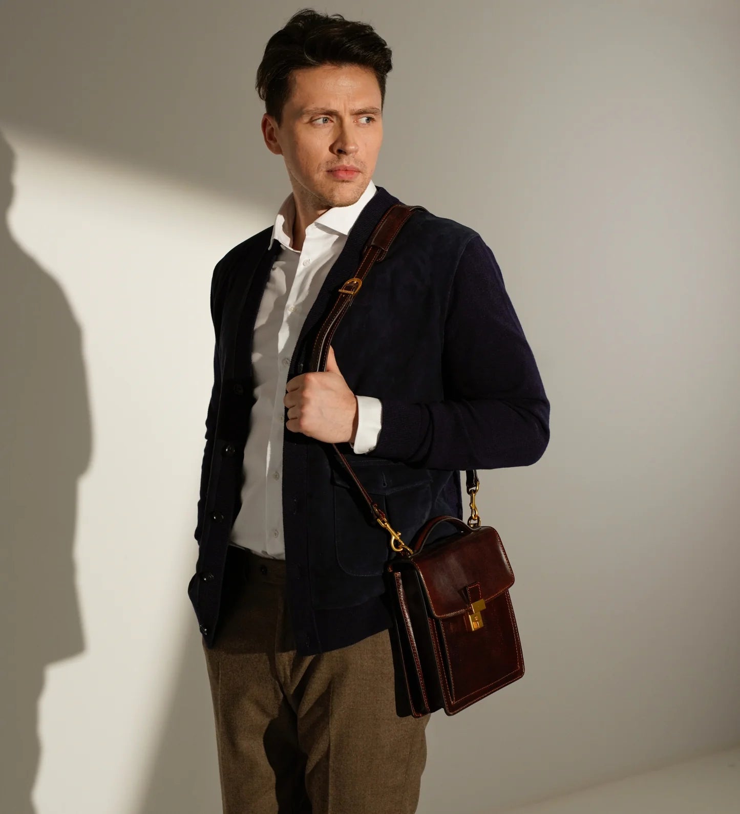 Perfektní společník pro moderního muže i ženu. Malá celokožená aktovka klasického nadčasového vzhledu pro ty, kteří mají rádi jednoduchost. Protože se vám do kapes kalhot nevejde peněženka, smartphone, klíče a nyní ani tablet, je to taška, do které se vejdou ty nezbytnosti, bez kterých nemůžete odejít z domova. Tato malá a kompaktní taška má vzhled klasické obchodní aktovky v kombinaci se snadným přenášením brašny.