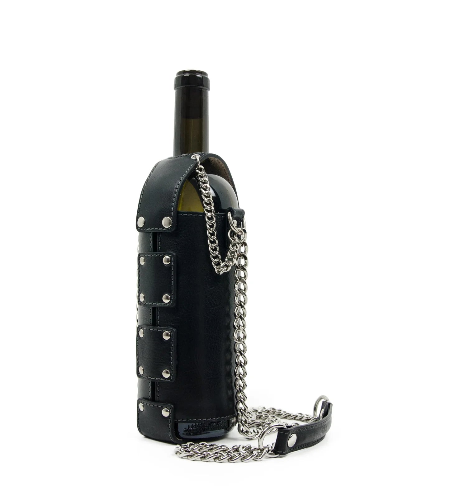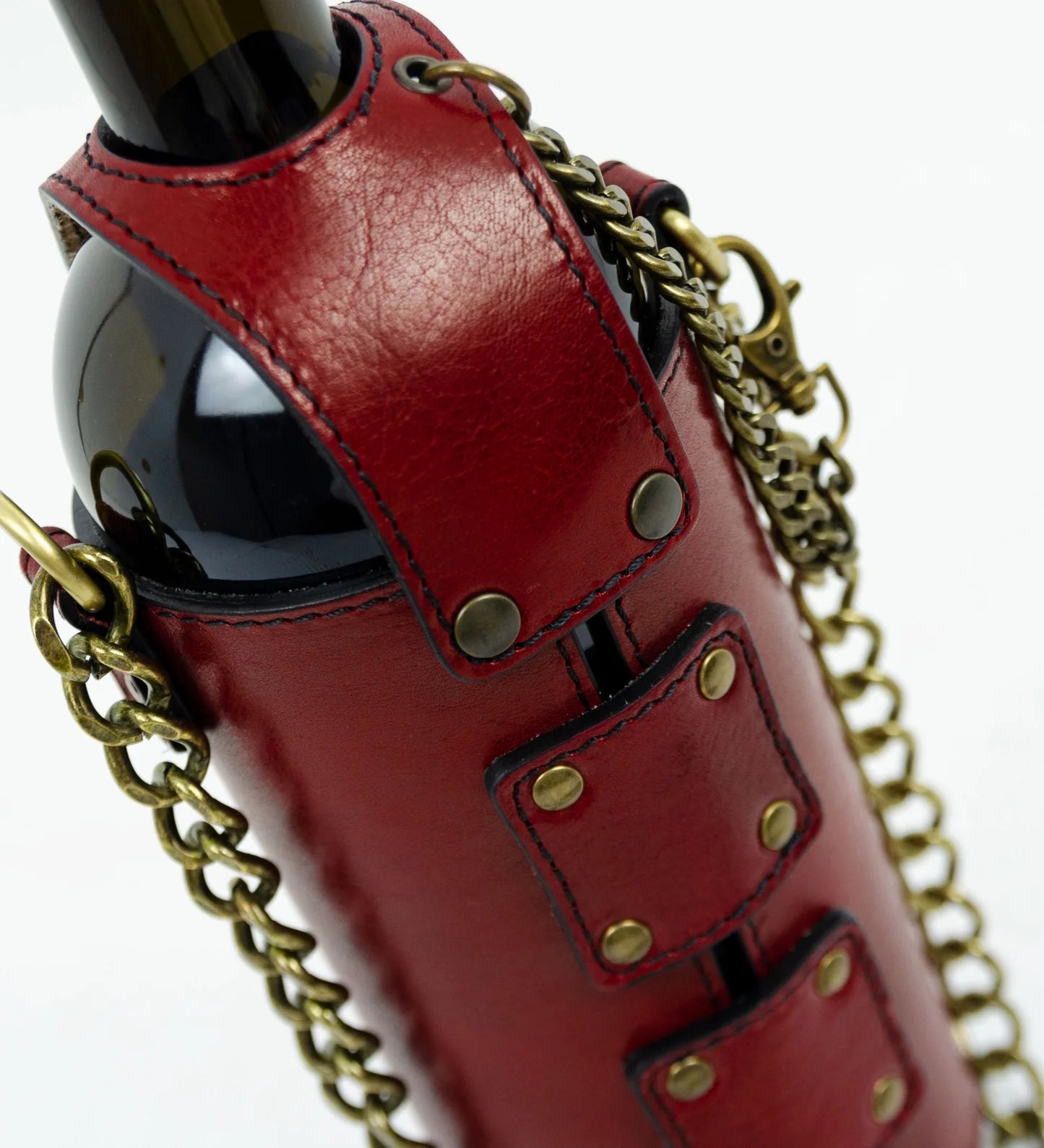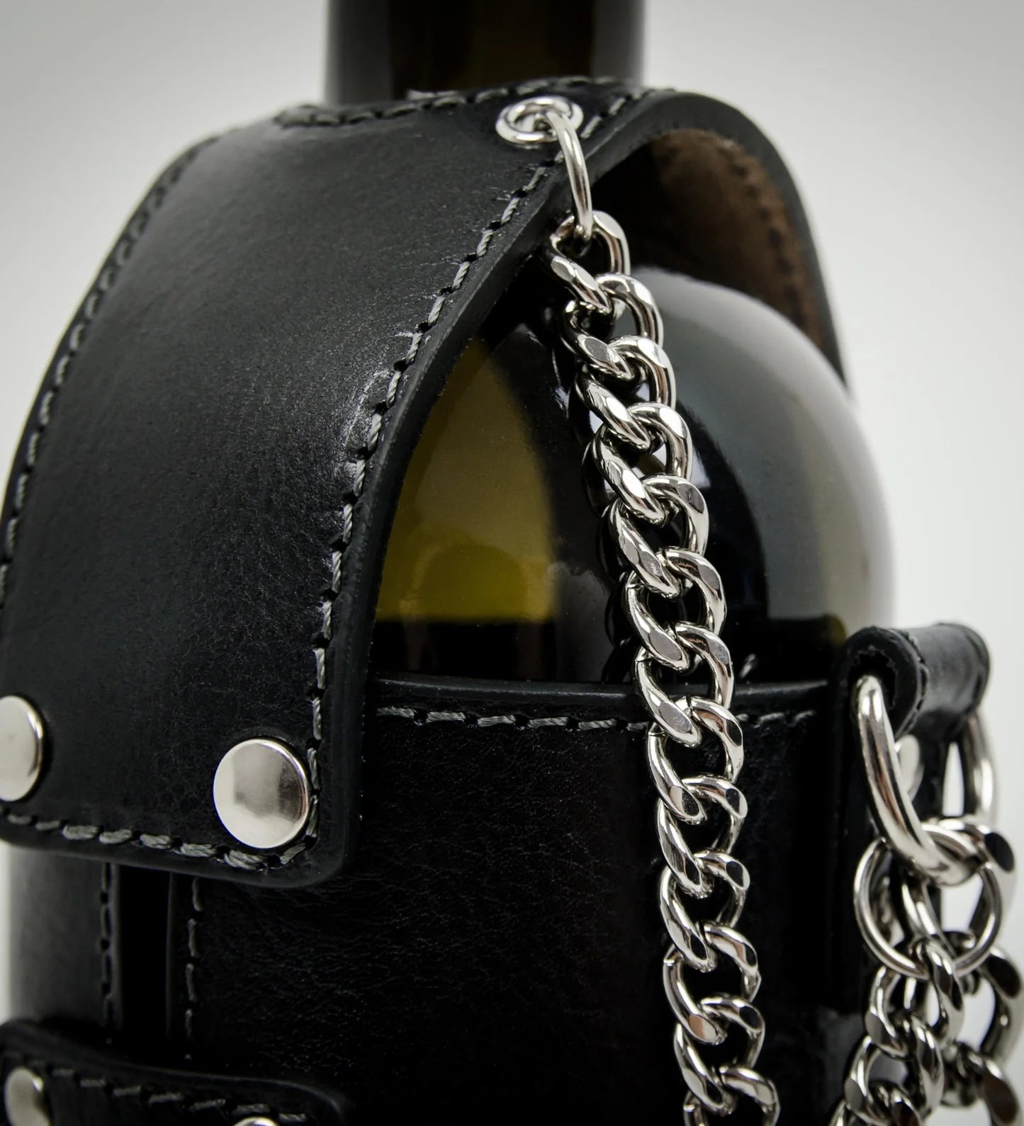 Tento elegantní nosič na láhev vína z kvalitní italské kůže je ideální pro bezpečný a stylový transport vína na jakoukoli oslavu – ať už jde o piknik v parku, domácí setkání nebo svatební hostinu. Kožené pouzdro je vhodné pro všechny typy lahví vína a je vybaveno bezpečným zapínáním pro snadný přístup. Díky ramennímu popruhu z řetízku jej pohodlně přenesete na rameni. Kvalitní kovové prvky dodávají tomuto kousku osobitý dotek, což z něj činí perfektní dárek. Kožené pouzdro pro luxusní italské nebo francouzské víno.