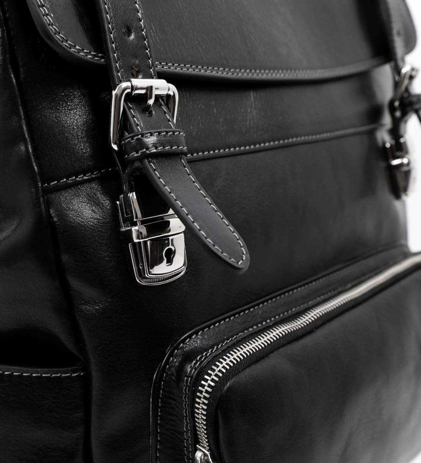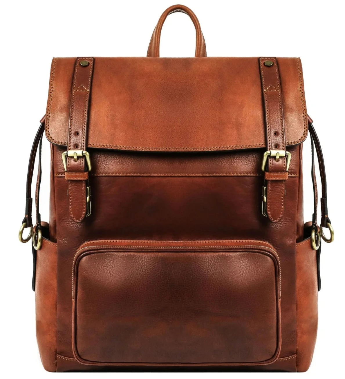 Italský kožený batoh v rustikálním stylu je stvořený pro stylového cestovatele. Jeho prostorný design pojme všechny nezbytnosti každého dobrodruha a ještě něco navíc. Tento batoh z prémiové kůže (Vachetta), navržený v Itálii, nabízí nejen luxusní vzhled, ale také maximální bezpečí vašich věcí díky dvěma zapínáním na tlačítko, funkčnímu klíči a zipové kapse přímo na zádech.