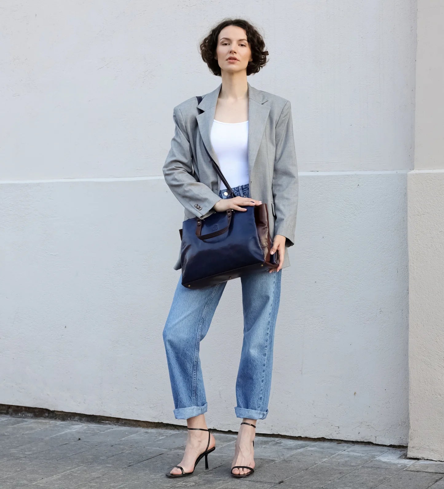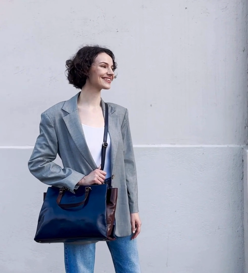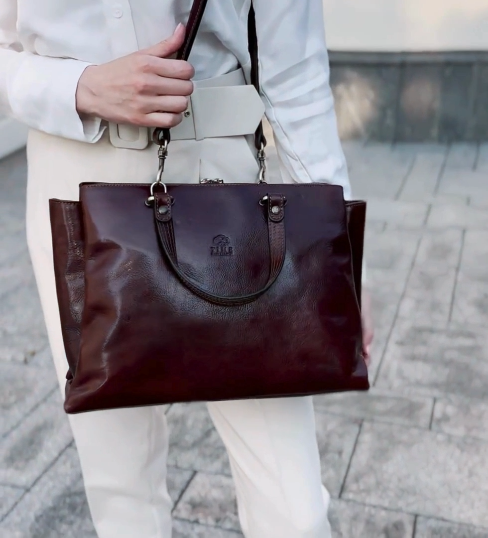 Tento italský tote bag z prvotřídní kůže dodá každé sebevědomé ženě styl a charakter. Jeho univerzální design umožňuje široké využití – můžete jej nosit do práce, na nákupy, schůzky nebo procházky, a přitom se cítit vždy pohodlně a elegantně. Taška je dostatečně prostorná, aby pojmula malý notebook a další nezbytnosti.