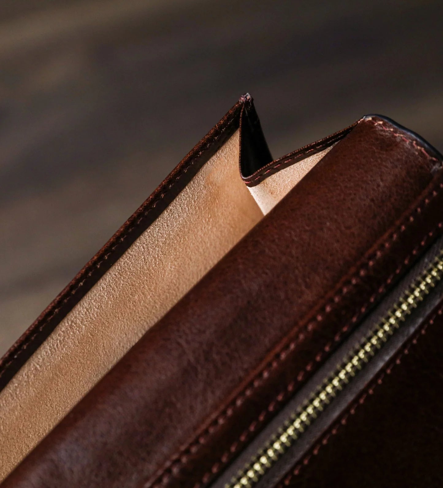 Proces činění je dlouhý a řemeslný proces, který trvá zhruba dva měsíce a zanechává kůži jedinečné variace odstínů a barev. Tato kožená patina v průběhu času dozrává a produkt tak po letech získává zemitější odstín.