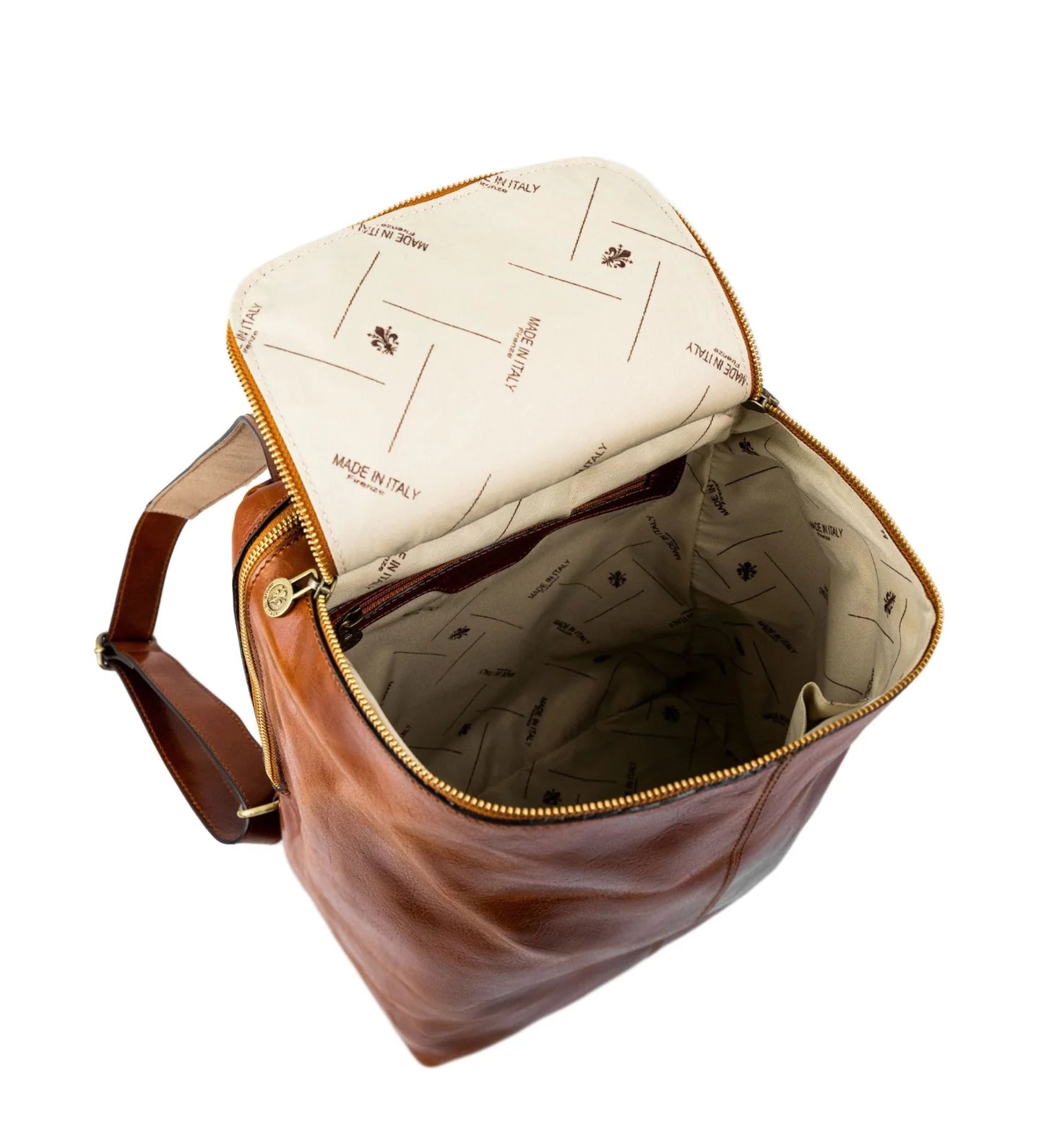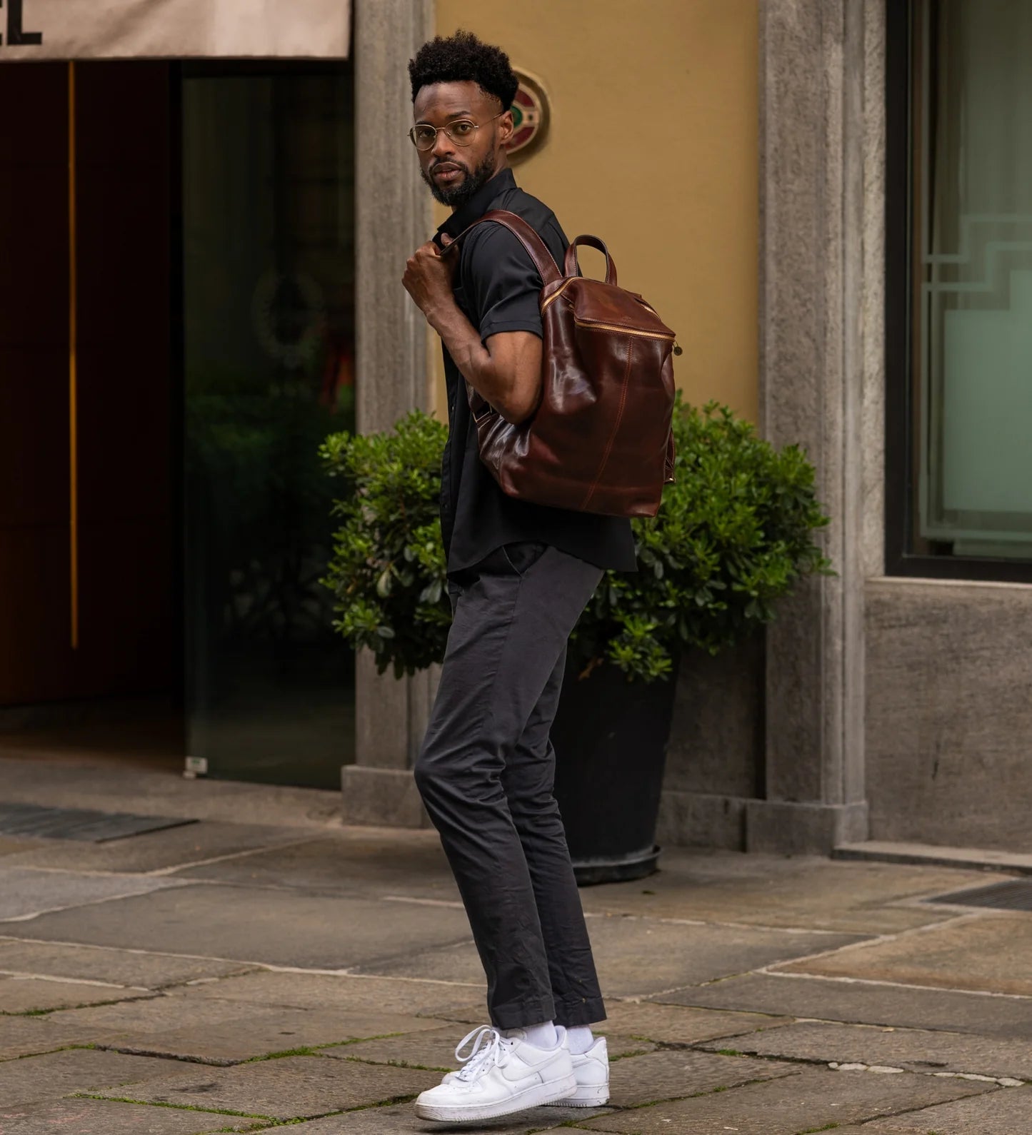 Tento jedinečný batoh z italské kůže, inspirovaný origami, ztělesňuje čistý, ale zároveň propracovaný design. Vyrobený z prvotřídní kůže v samém srdci Itálie, je ideálním společníkem pro každodenní nošení i cestování. Batoh má dostatečnou kapacitu 14 litrů a přihrádku pro notebook až do velikosti 13". Jeho funkční uspořádání nabízí několik přihrádek a kapes, které udrží vše na svém místě. Je vhodný také pro dokumenty a složky velikosti A4. Nastavitelné ramenní popruhy a pohodlné madlo usnadňují nošení, zatímco kvalitní kovové prvky zaručují spolehlivost. Více funkcí, více kvality, více cestování! Nádherný unisex design vhodný pro muže i ženy.