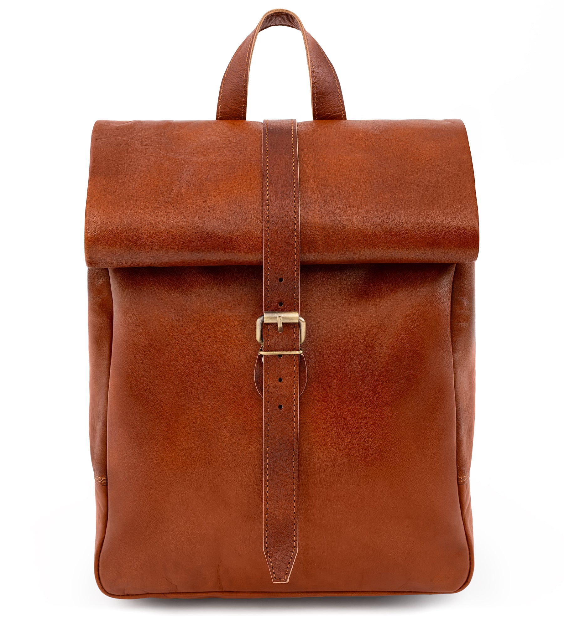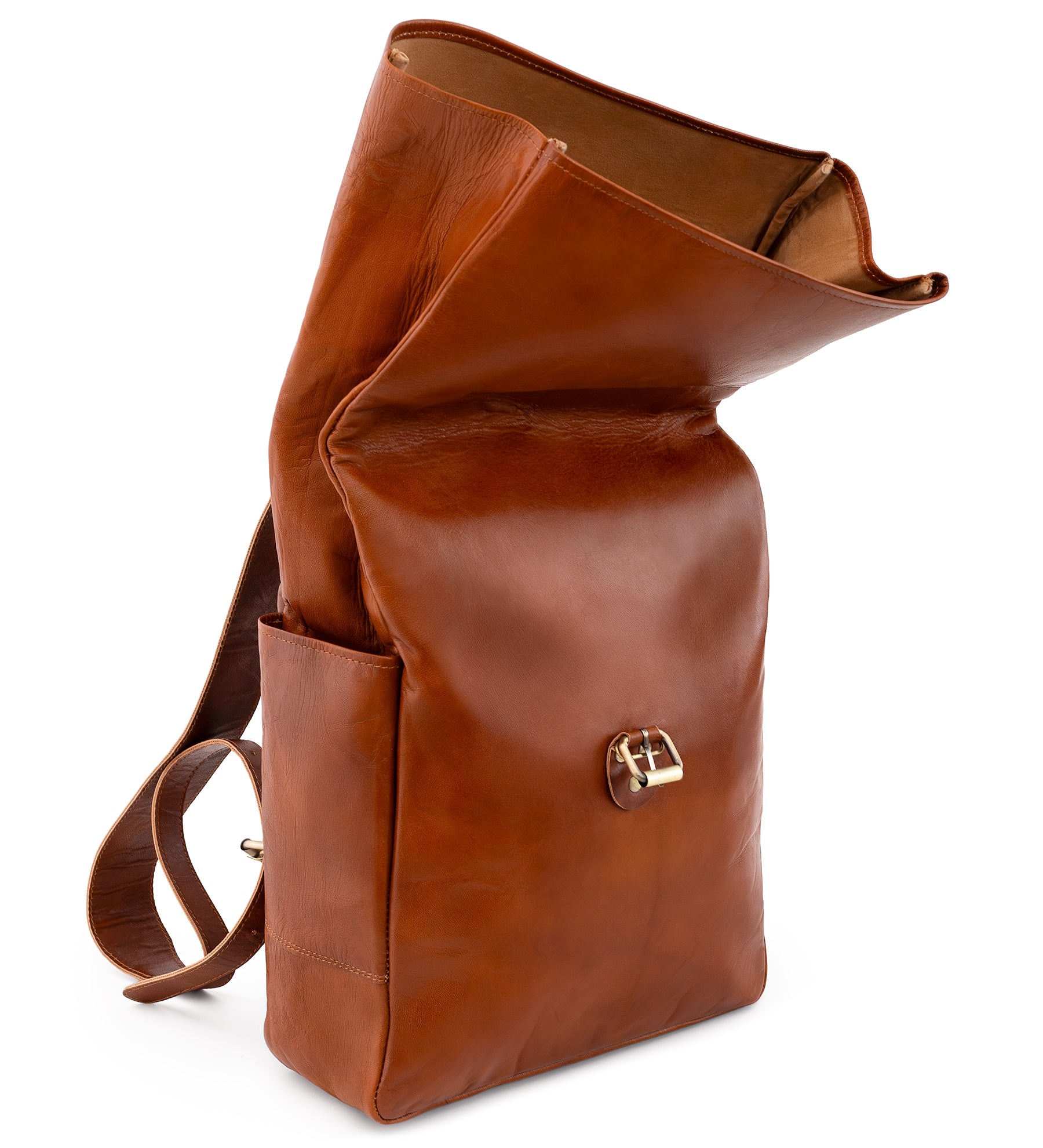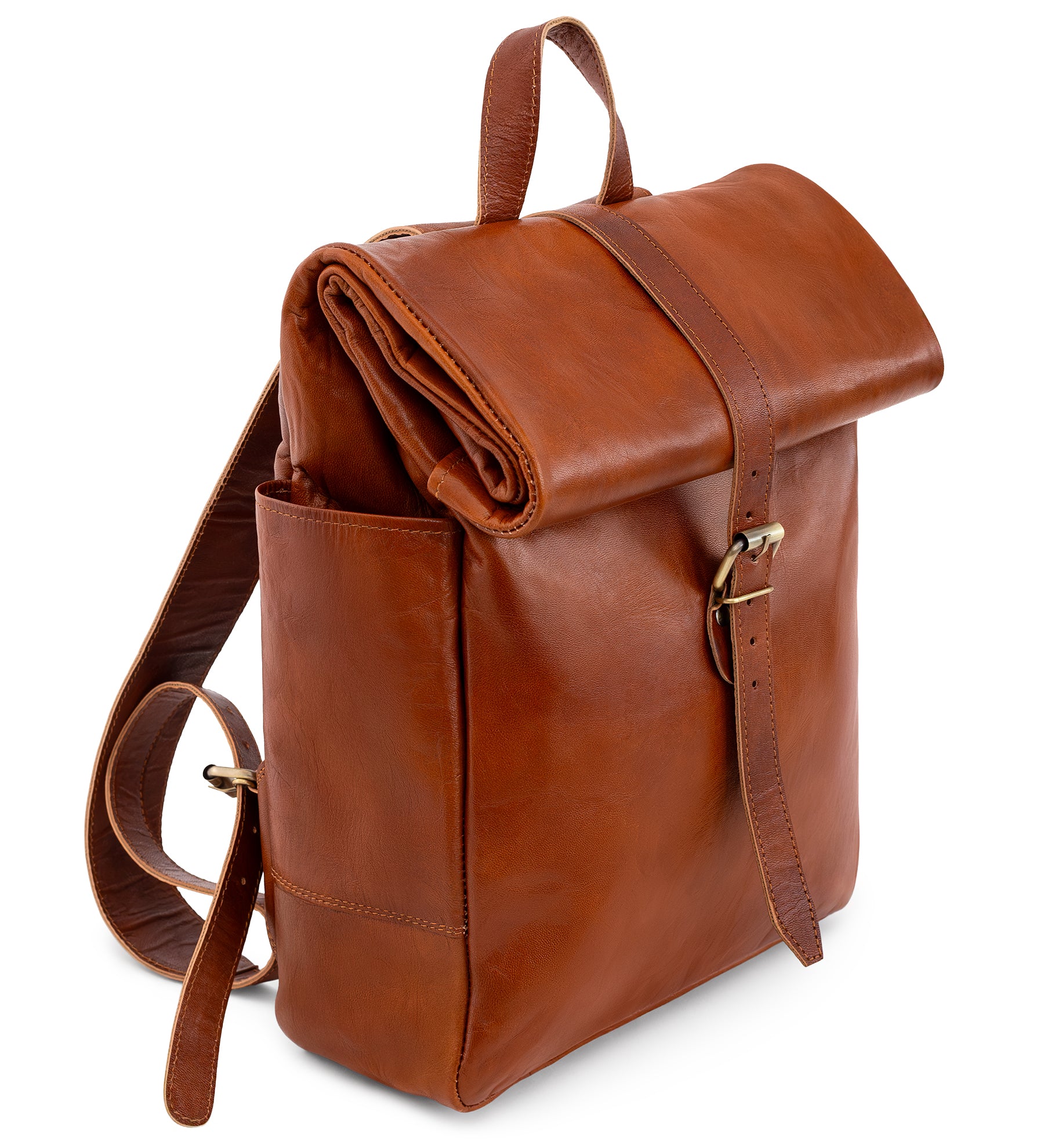 Rolovací kožený batoh v dokonalém čistém designu. Z boku má batoh 2 zásuvné kapsy - na brýle či deštník. Univerzální velikost vhodná do školy, práce i do města. Horní část batohu lze srolovat a zajistit koženým páskem s klasickou retro přezkou. Pokud rolování není váš styl, můžete horní část pouze přehnout a opět zafixovat koženým páskem. Batoh má pevné poutko pro nošení v ruce, nastavitelné popruhy a nízkou hmotnost (1 kg) pro pohodlné nošení na zádech i celý den.