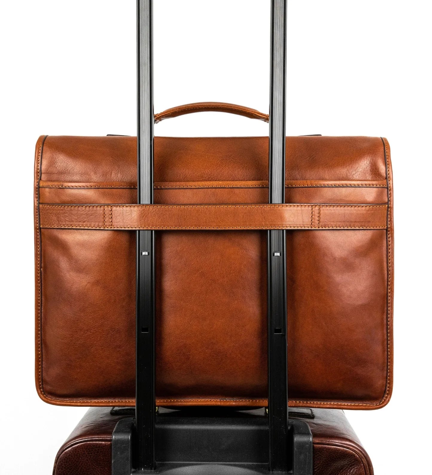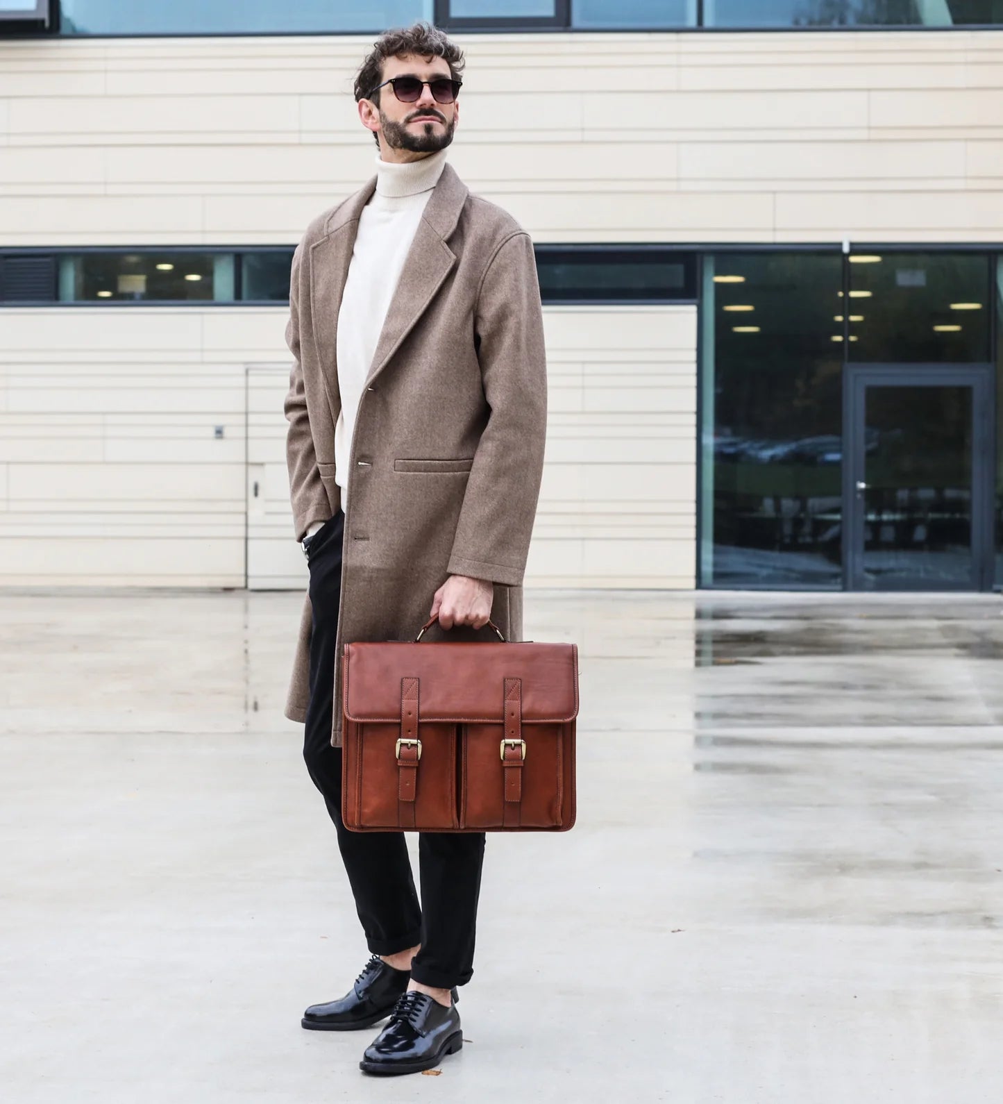Seznamte se s jednou z nejkrásněji navržených kožených brašen, která spojuje britskou eleganci s vintage italským stylem. Tato brašna je ideální pro přenášení vašeho notebooku, dokumentů a všech potřebných elektronických zařízení, a nabízí řadu praktických funkcí, včetně možnosti připevnění na rukojeť pojízdného kufru.