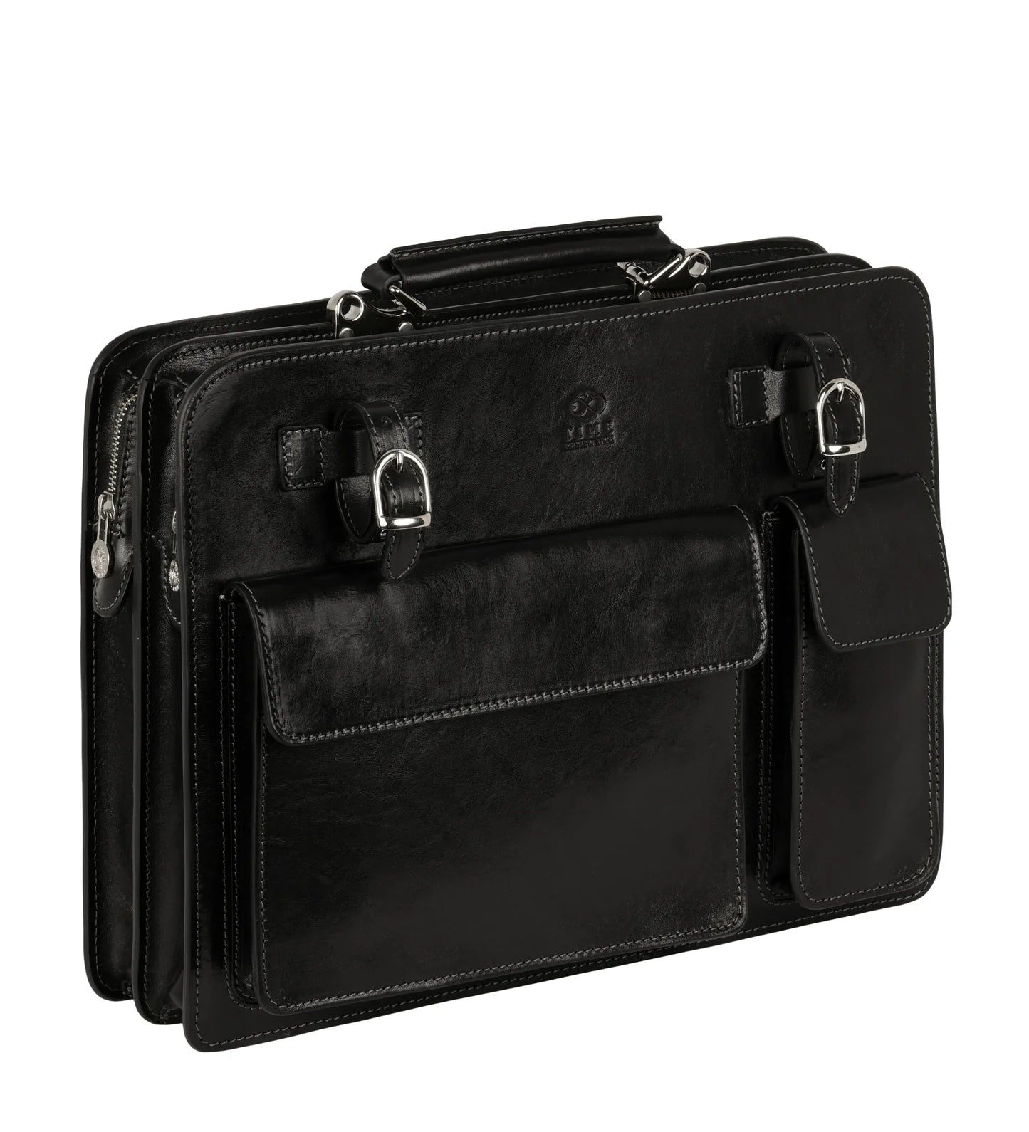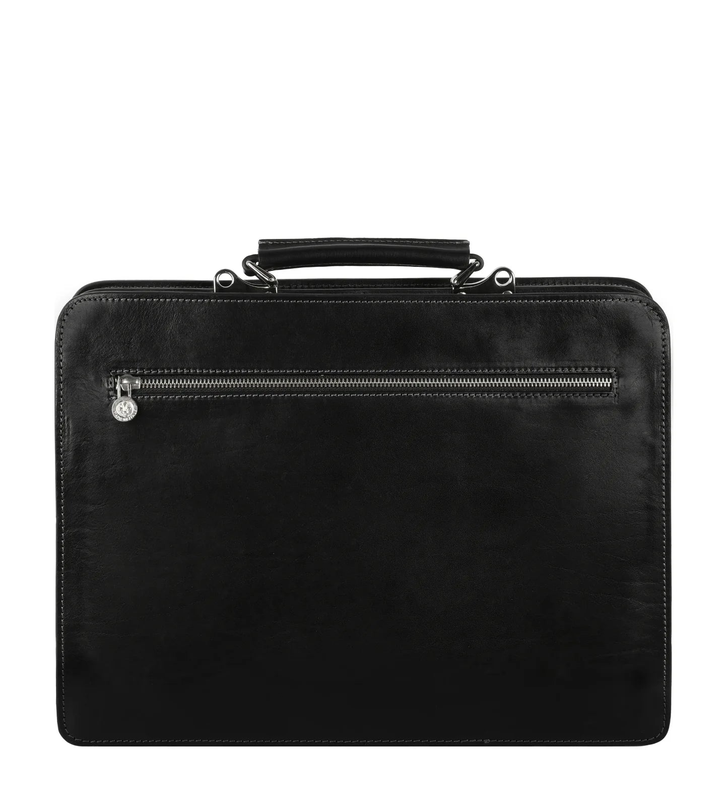 Uvnitř najdete organizér pro smartphone a pera, stejně jako dva postranní zipové oddíly a další kapsy, které vám pomohou udržet všechny vaše věci v pořádku. Praktická venkovní kapsa na zip udržuje důležité předměty bezpečně, ale zároveň snadno dostupné. Taška má také dvě přední kapsy, které jsou ideální pro často používané věci, a dvě kožené spony na přední straně, kam můžete připevnit deštník nebo noviny.