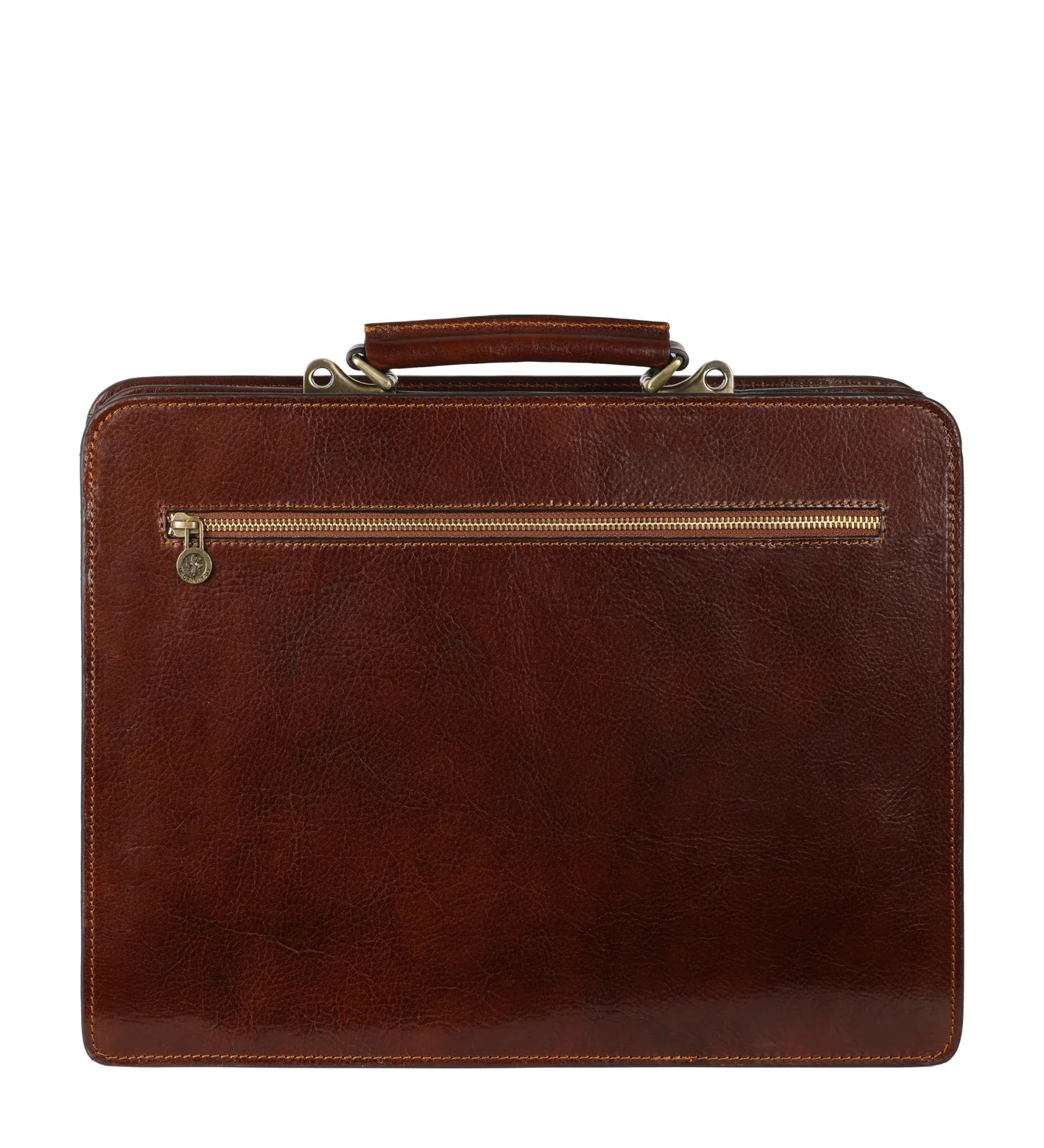 Tato pracovní taška z italské kůže dodá vašemu neformálnímu outfitu formální eleganci. Klasický britský design, inspirovaný italskými koženými brašnami, zaručuje nadčasový styl a funkčnost. S prostorem pro notebook do velikosti 15”, a kapacitou 8 litrů, je tato taška ideálním společníkem na každý den.