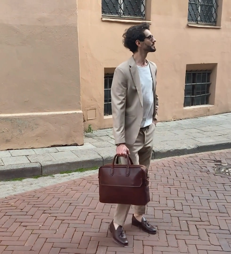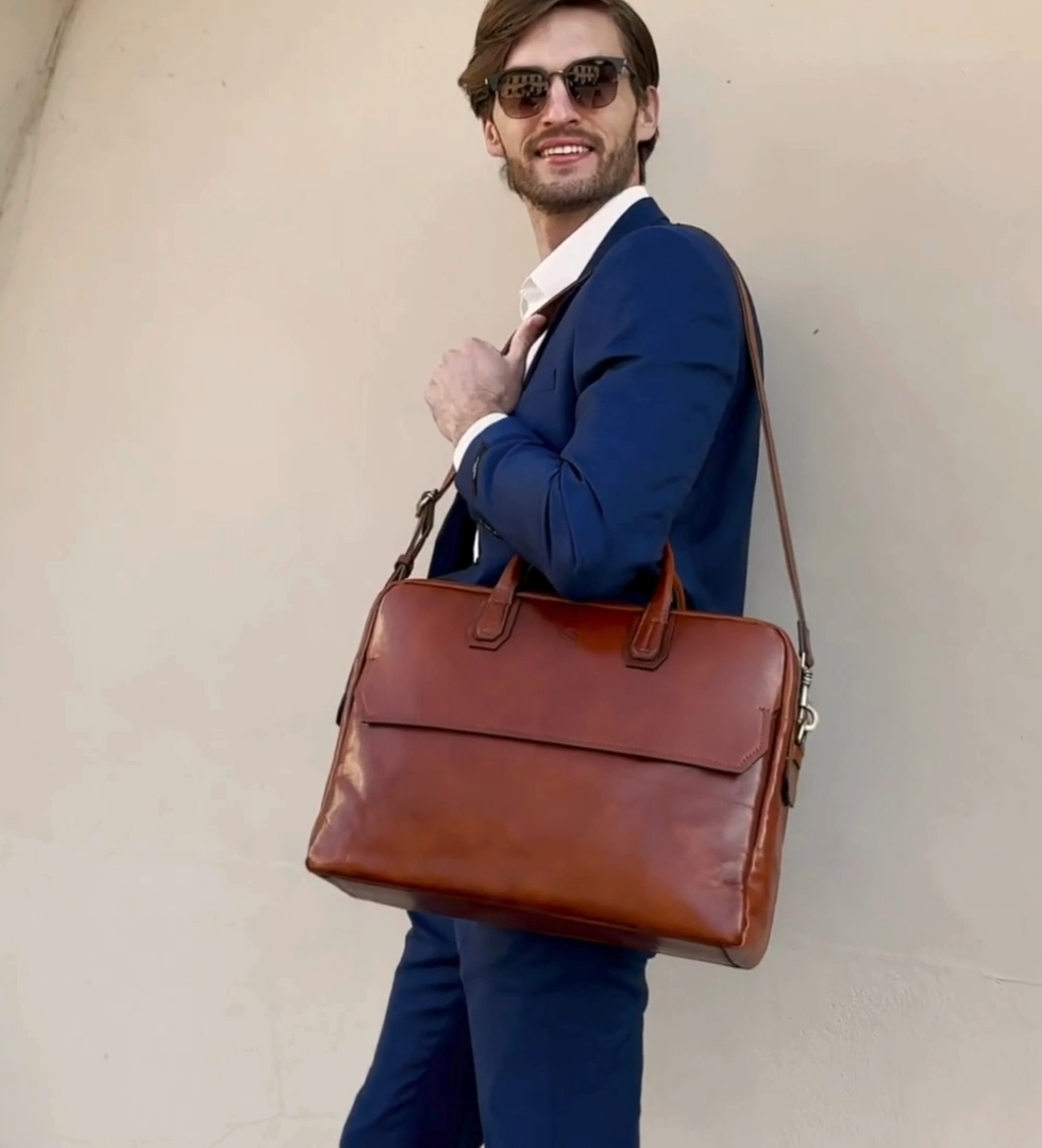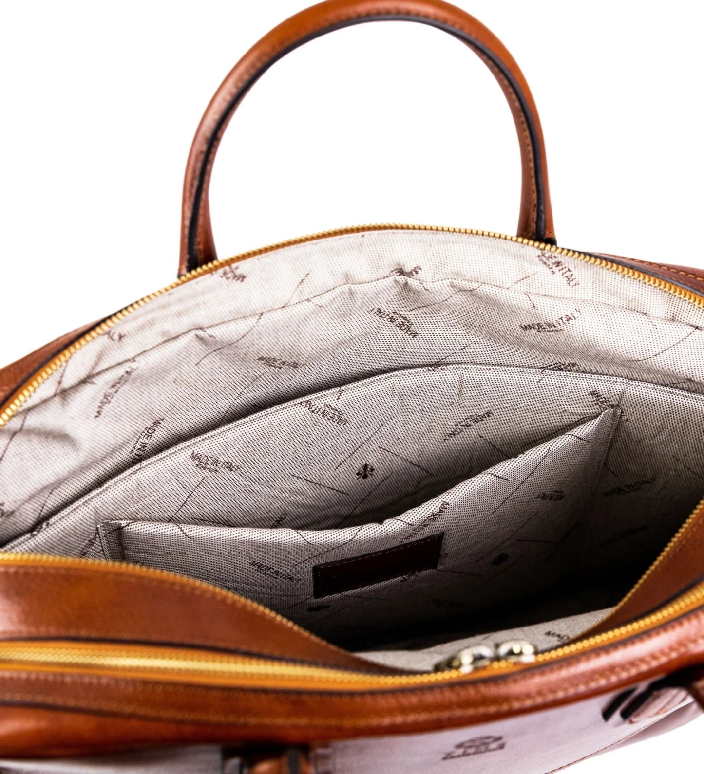 Do velké kožené aktovky Nostromo se vejde vše, co potřebujete. Ručně vyrobená aktovka z prémiové italské kůže s odnímatelným ramenním popruhem je dokonalým společníkem na cesty. Do dvou prostorných přihrádek se vejdou dokumenty velikosti A4. Navíc bezpečně pojme 17" notebook a tablet, protože polstrované kapsy chrání před nárazy a poškrábáním. Business taška má spoustu kapes a uvnitř velkou kapsu na zip. Pokud by to nestačilo – přidali jsme další kapsu s klopou na přední straně a skrytou kapsu s extra silným magnetickým uzávěrem na zadní straně – ideální pro věci, ke kterým potřebujete snadný přístup.